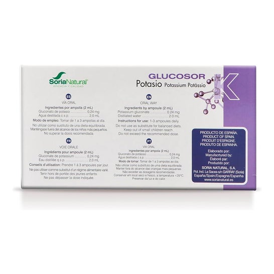 Product made to provide potassium to the body. Potassium is a mineral necessary for protein synthesis and promotes muscle development. It has a diuretic effect.