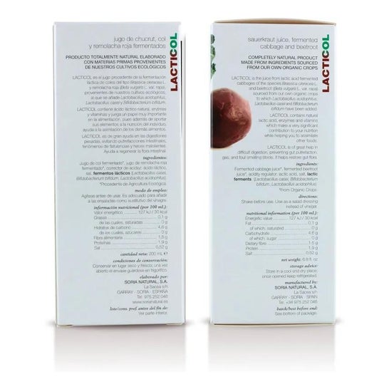 Soria Natural Lacticol Organic 200ml is a very beneficial product for the intestinal microflora. Thanks to its formulation, it potentiates and favours lactic fermentation, at the same time as it increases the development of beneficial microorganisms in our digestive system.