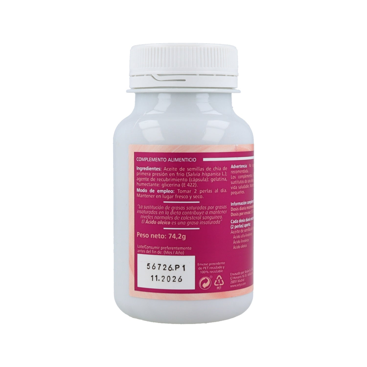 Sotya chia oil pearls contain alpha-linolenic acid and linoleic acid.