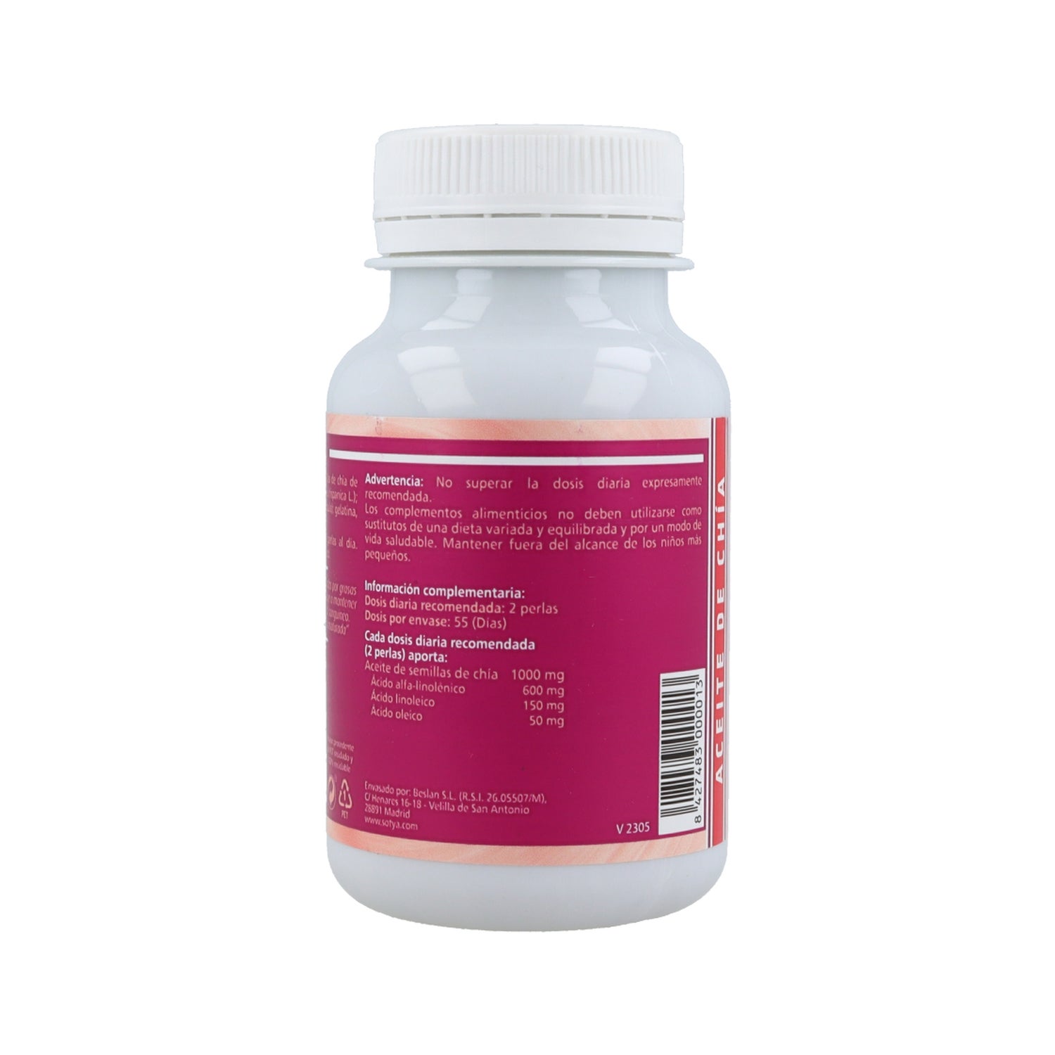 Each pearl provides: Chia seed oil 2000mg, alpha-linolenic acid 1200mg, linoleic acid 300mg, oleic acid 100mg.