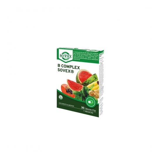 Sovex B Complex 30caps is a dietary supplement that consists of B complex vitamins. This product is designed to provide a concentrated source of these essential vitamins, which are fundamental for various functions in the body.