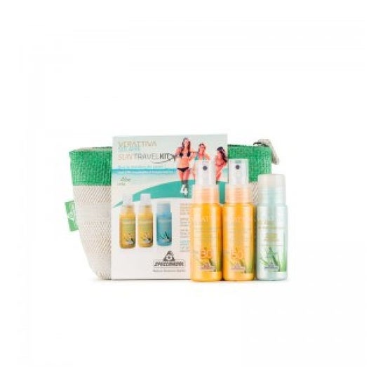 Travel size face and body care kit containing an SPF50 sunscreen, an SPF30 sunscreen and an after-sun balm. Helps protect the skin from the harmful effects of ultraviolet rays and provides relief after sun exposure. Presented in a practical carrying case for easy portability. Suitable for all skin types.