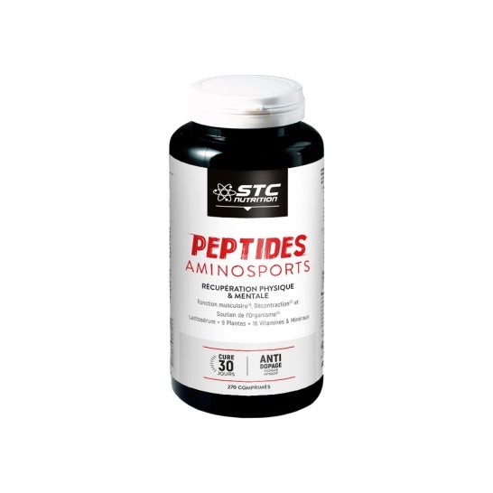 STC Nutrition Peptides Aminosports Amonosport tablets allow a better physical and mental recovery and conform to the AFNOR NF V94-001 anti-doping standard. They are made from plant extracts, whey peptides, vitamins and minerals. It improves muscle recovery, since its peptides are easily assimilated and are formed by amino acids necessary to create and maintain muscle tissue. Its extract of eleterococcus increases the physical and mental resistance of the body in extreme conditions. It contains white willow extract that improves relaxation and mental and physical well-being. Its meadowsweet extract promotes drainage and the elimination of toxins. Contains B vitamins and iron that facilitate the conversion of carbohydrates and fats into energy. Calcium contributes to the normal functioning of muscles, reducing the possibility of cramps.