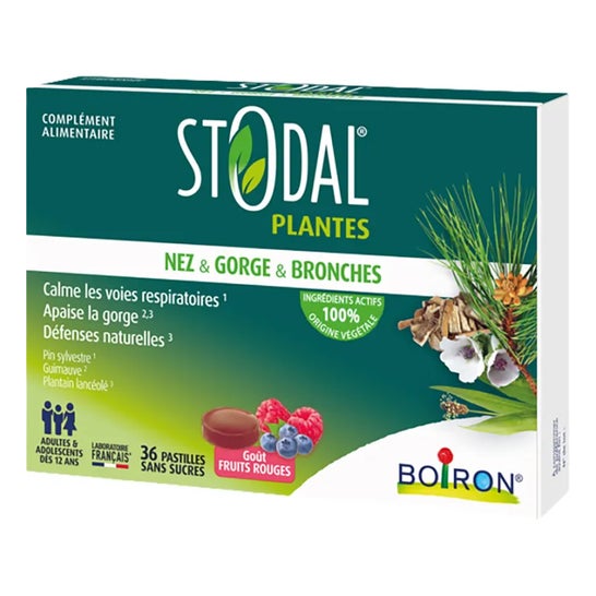 Stodal Plants Nose & Throat & Bronchi Red Fruits combines respiratory comfort with natural support, offering a pleasant tasting experience. Its use is simple, with a recommended intake of six tablets a day for adults and adolescents over 12 years old, distributed throughout the day. This program can be repeated according to respiratory needs and the desired comfort.