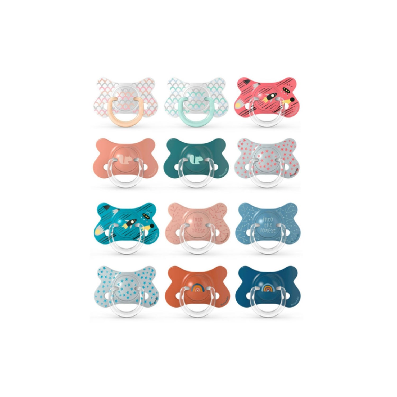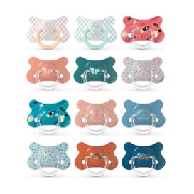 Latex is an 100% natural product, amber in colour and has a soft and elastic texture that most resembles the feeling of the mother's breast. It is a hygroscopic material, meaning it absorbs water and retains odour. It is a natural material therefore it wears down faster than silicone. It is recommended for infants who already have teeth, from 6 to 12 months.
