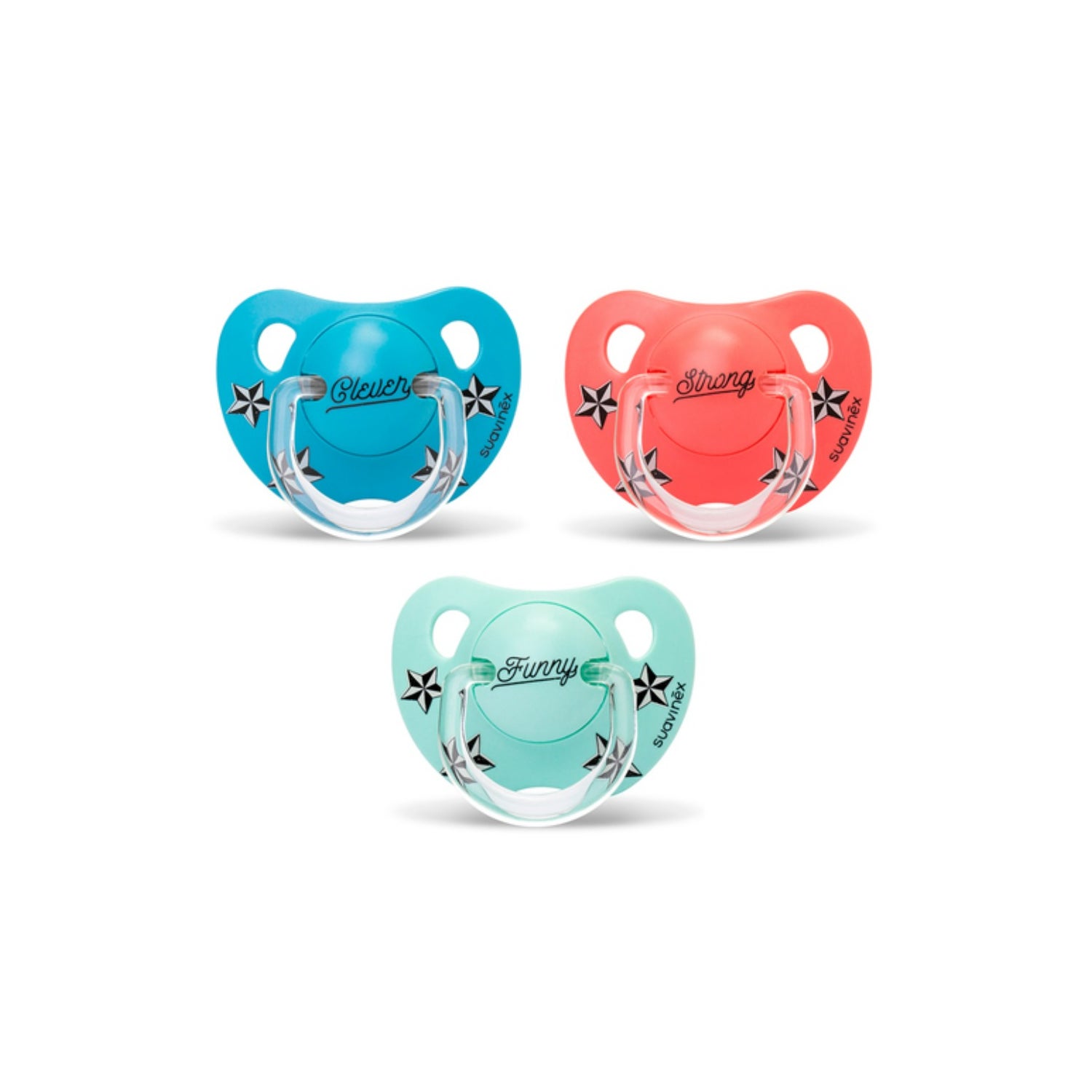 Pacifier model As you by Suavinex with physiological silicone nipple. The nipple is flat and symmetrical, which helps to exert minimal pressure on the palate.