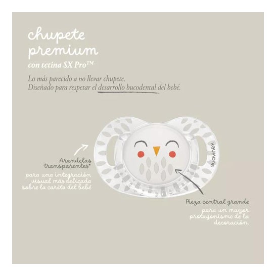Suavinex Premium Bonhomia Owl Pacifier Beige 6-18m 1 pc *The colour or design may vary depending on the stock available from the pharmacy serving the order.