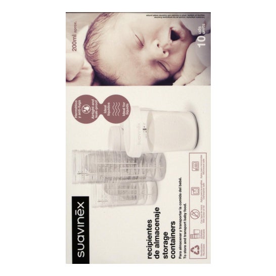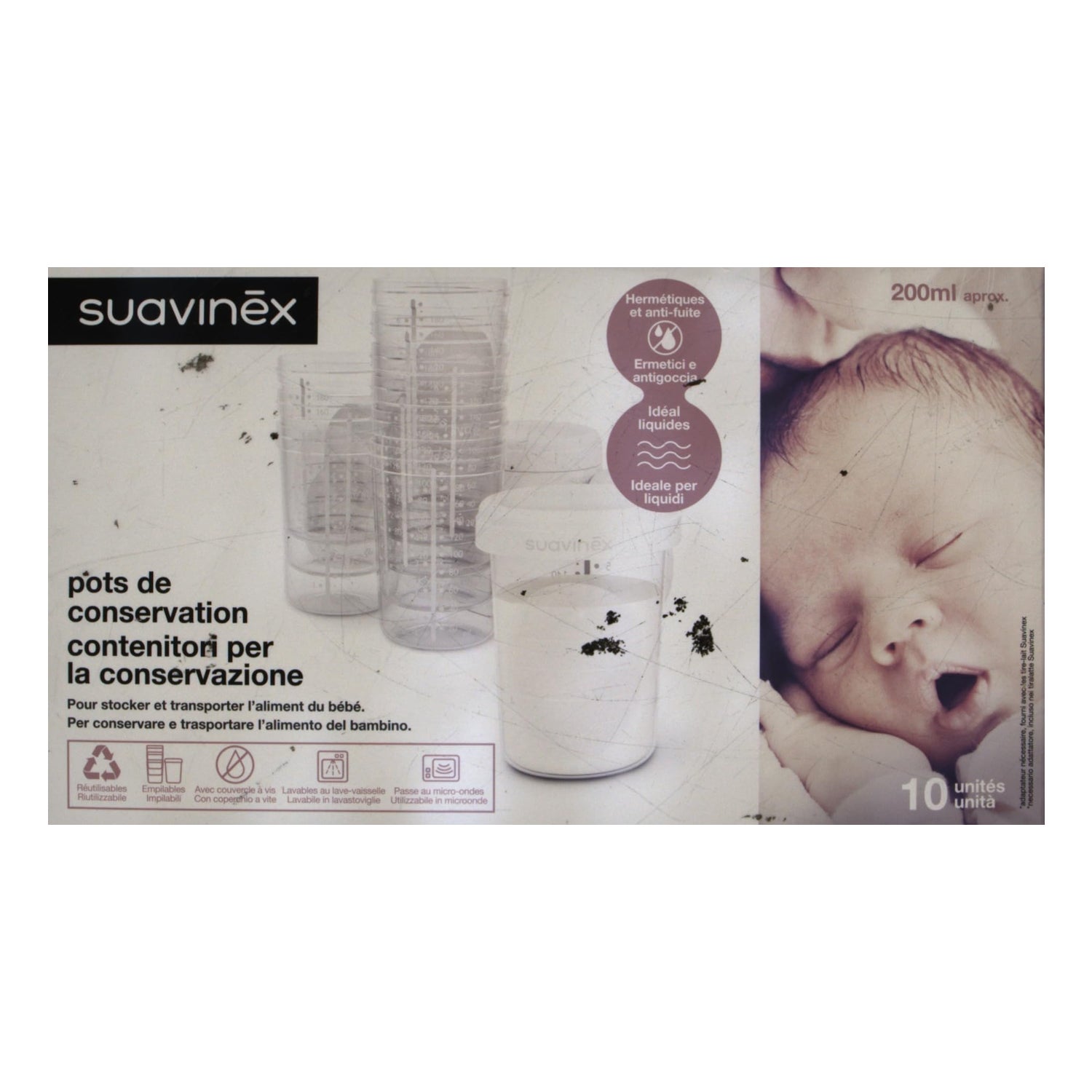 Suavinex storage jars, in a pack of 10 units, are ideal containers to preserve and transport your baby's food without the risk of spills. Thanks to their airtight screw-on lid, they are perfect for both liquids and solids, such as freshly expressed breast milk or baby food.