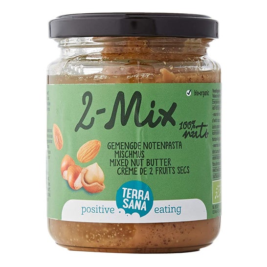 Soft and delicious mixture of organic hazelnuts and almonds, combined with a little salt, which enhances the flavour of the nuts. Its flavour and scent is perfect for spreading on bread or crakers. It does not contain sugar or palm oil.