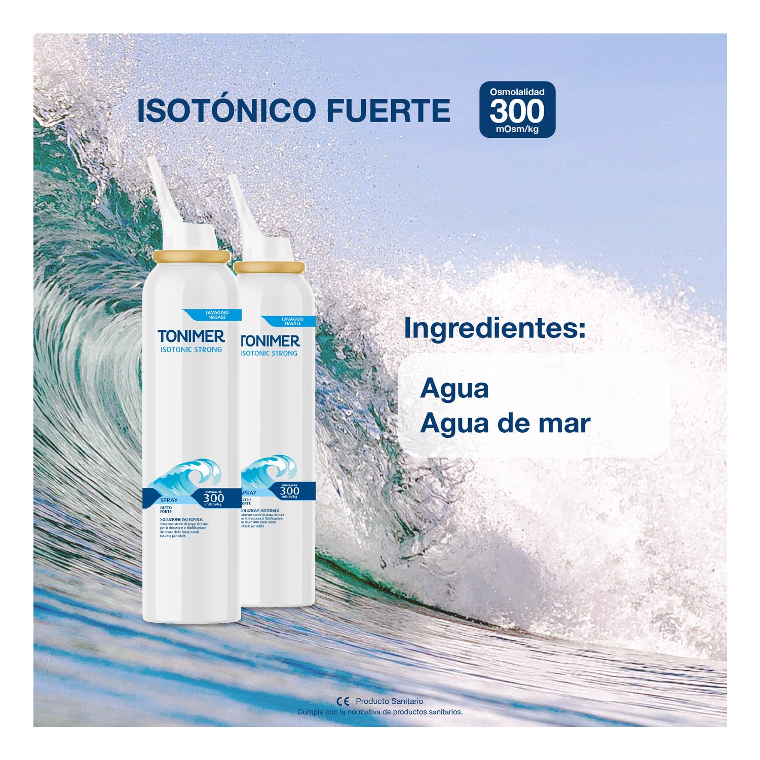 Tonimer Jet Solution is a sterile isotonic solution of seawater, with low sodium content and a slightly alkaline pH.