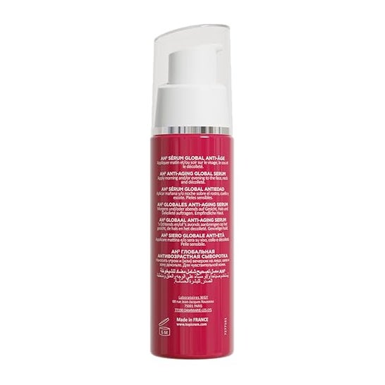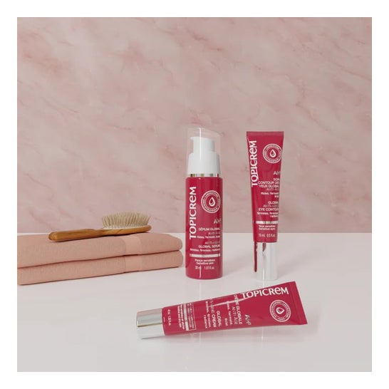 Topicrem AH3 global serum is a concentrated serum that contains 3 hyaluronic acids of high purity, stabilized vitamins C and E, vitamin PP and a dipeptide. Thanks to this, it delays the signs of aging and provides greater luminosity to the skin. It prevents the appearance of wrinkles, evens out skin tone and redensifies the skin. It has a pleasant melting texture on the skin. It can be used on the skin of the face and neck. It protects the skin from damage caused by pollution and sunlight. It is suitable for sensitive skin and provides a firmer and more redefined skin, so that enhances the facial oval. Combined with Topicrem AH3 anti-ageing fluid it enhances its effect. Topicrem's global anti-aging serum comes in 4 ml tube format.