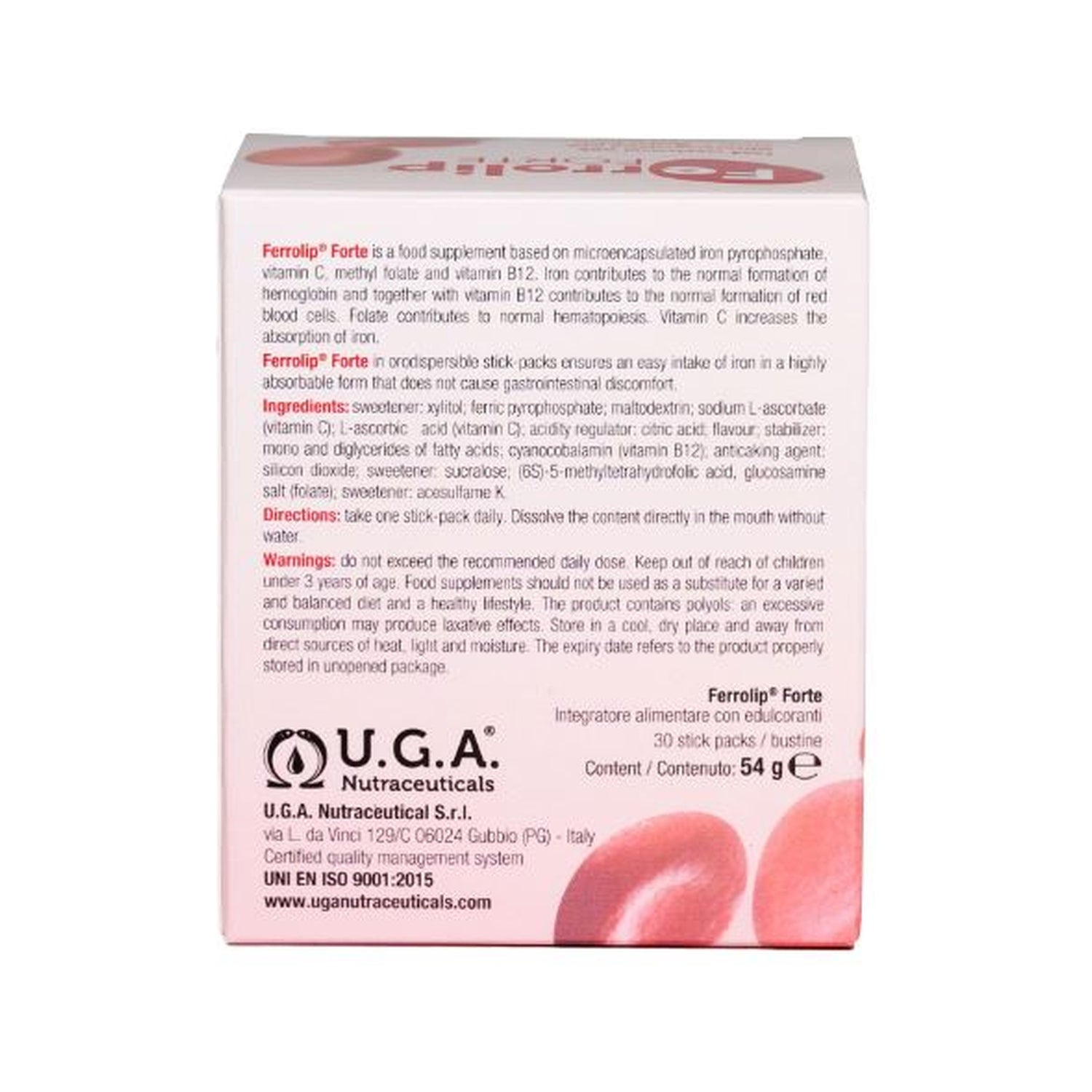 Uga Ferrolip Forte 30 Sticks is a supplement designed to effectively and conveniently improve iron levels. It is especially suitable for: