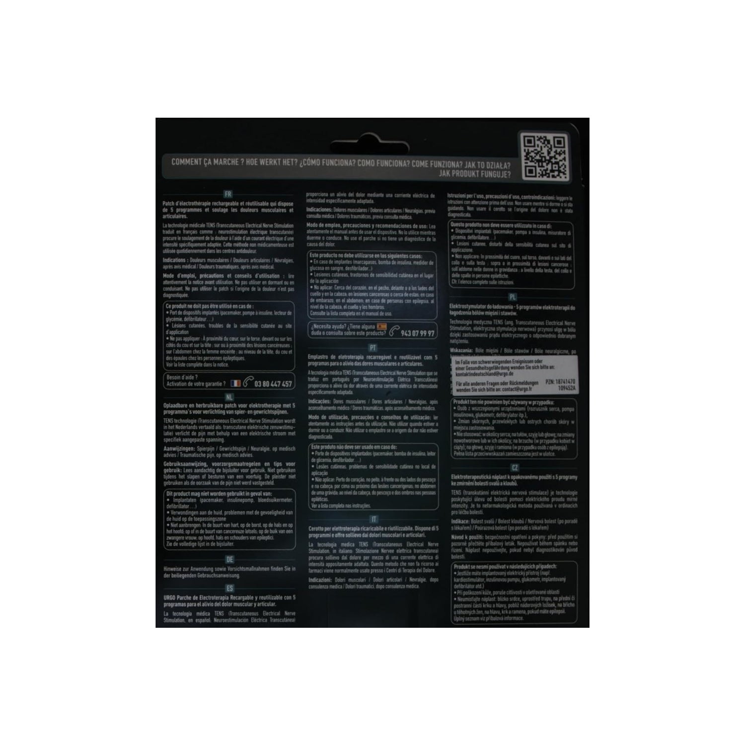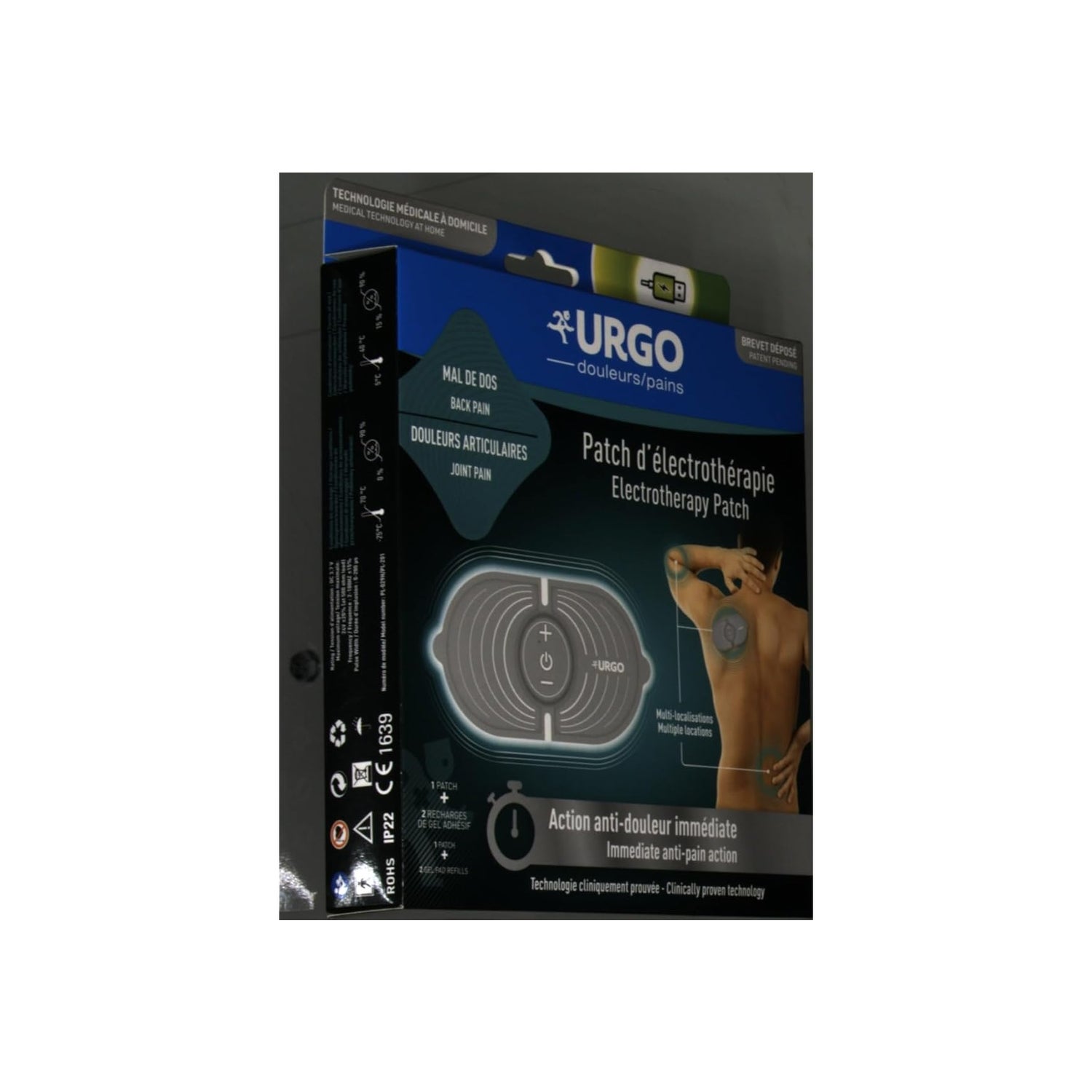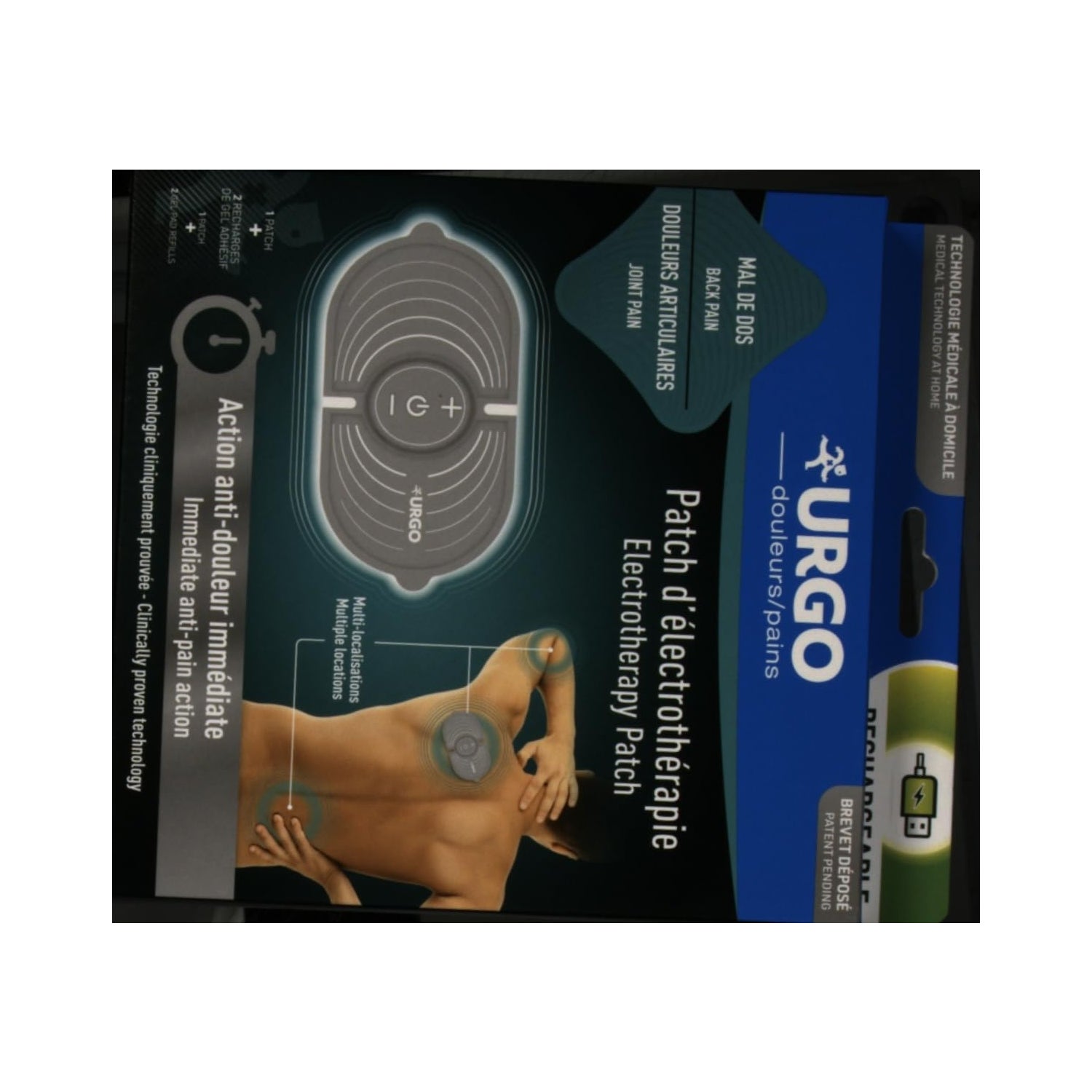 Urgo Multi-locations Rechargeable Electrotherapy Patch is a rechargeable electrotherapy patch that helps relieve muscle pain, joint pain, neuralgic pain and traumatic pain. It is a patch with a soft and flexible support, easy to use, reusable and rechargeable with up to 6 hours of autonomy.