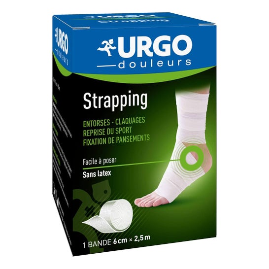 Urgo Strapping Elastic Adhesive Bandage 2.5Mx6cm is a product designed to provide support and protection in various areas of the body. This elastic bandage, made from a white 100% cotton fabric, is ideal for use in situations that require controlled compression.