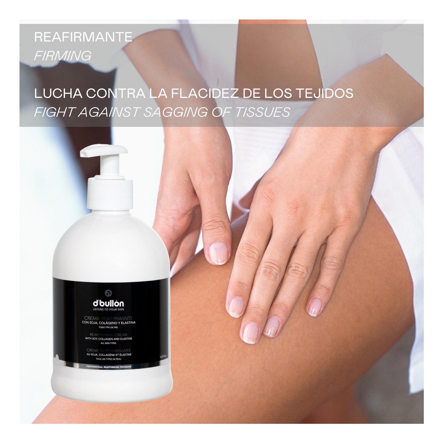 Firming body cream. This body cream firms the contour. Its formulation rich in nutrient products, the restructuring action of collagen and elastin (the main structural proteins of the dermis), and the firming action of Soy extract make the Firming cream provide the skin with natural texture and firmness.
