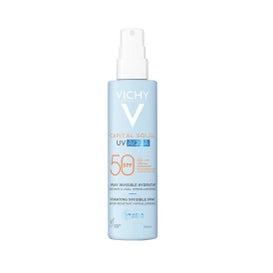 Vichy Capital Soleil UV Aqua Spray Moisturizing SPF50+ is a product designed to offer high sun protection while hydrating the skin. This spray, with a presentation of 200 ml, acts as a fluid shield that melts into the skin's surface, creating an effective barrier against UV rays.