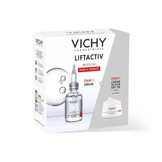 Vichy Liftactiv Serum Chest 30ml + Day Cream Spf30 15ml is a facial care set suitable for all skin types, even the most sensitive. It consists of Vichy LiftActiv Supreme H.A. Epidermic Filler serum 30ml and Supreme Day Cream SPF30 15ml. On the one hand, the day cream helps to reduce the appearance of wrinkles and expression lines, thanks to its formula with hyaluronic acid with progressive filling effect. It also helps protect the skin from the action of the sun's rays and the action of free radicals due to its combination of photostable SPF30 filters. In addition, this kit includes the serum with pure hyaluronic acid that helps to reduce the visibility of the deepest wrinkles and to give elasticity to the face.