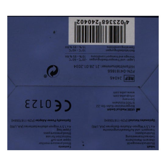 It contains the universal measuring cuff that fits any arm circumference between 23-43 cm, the carrying bag and 4 1.5v alkaline batteries for operation.