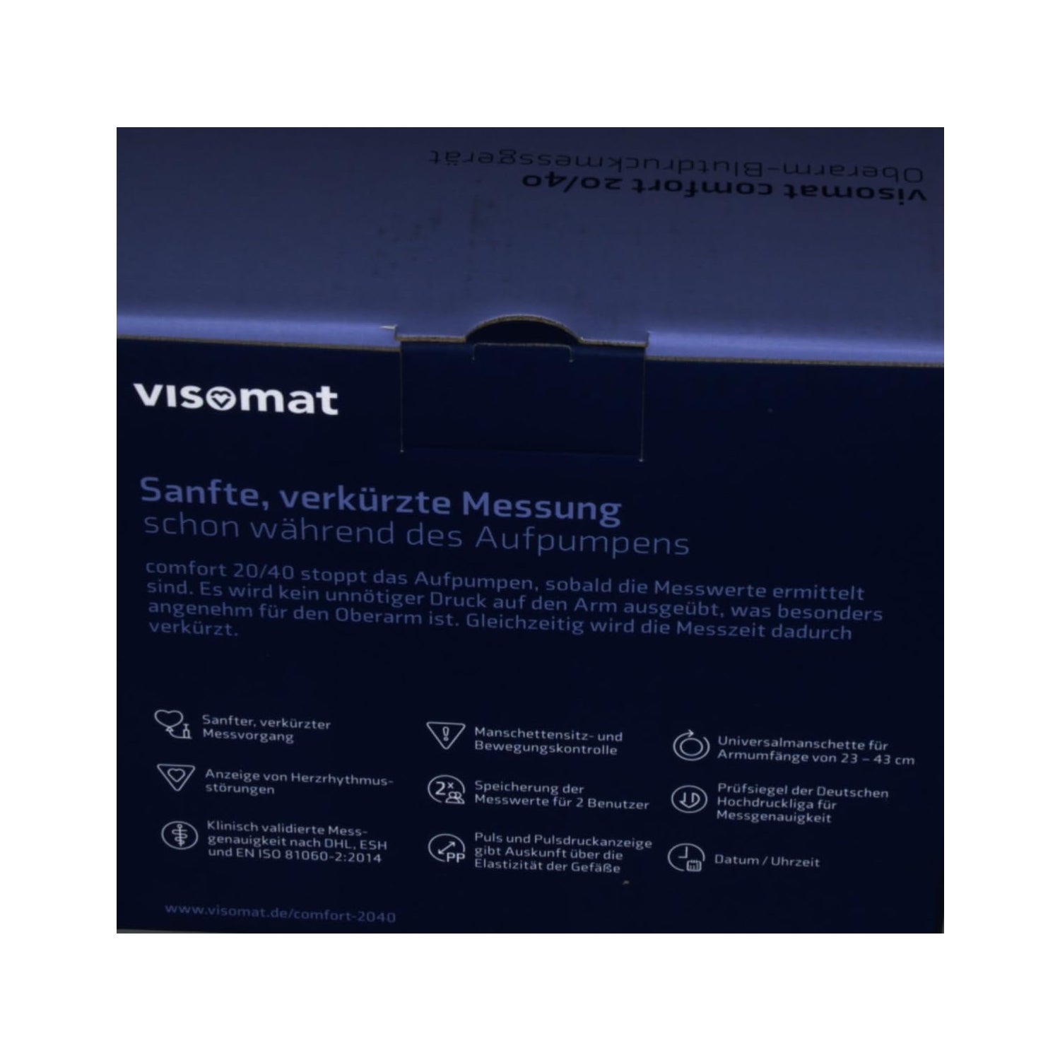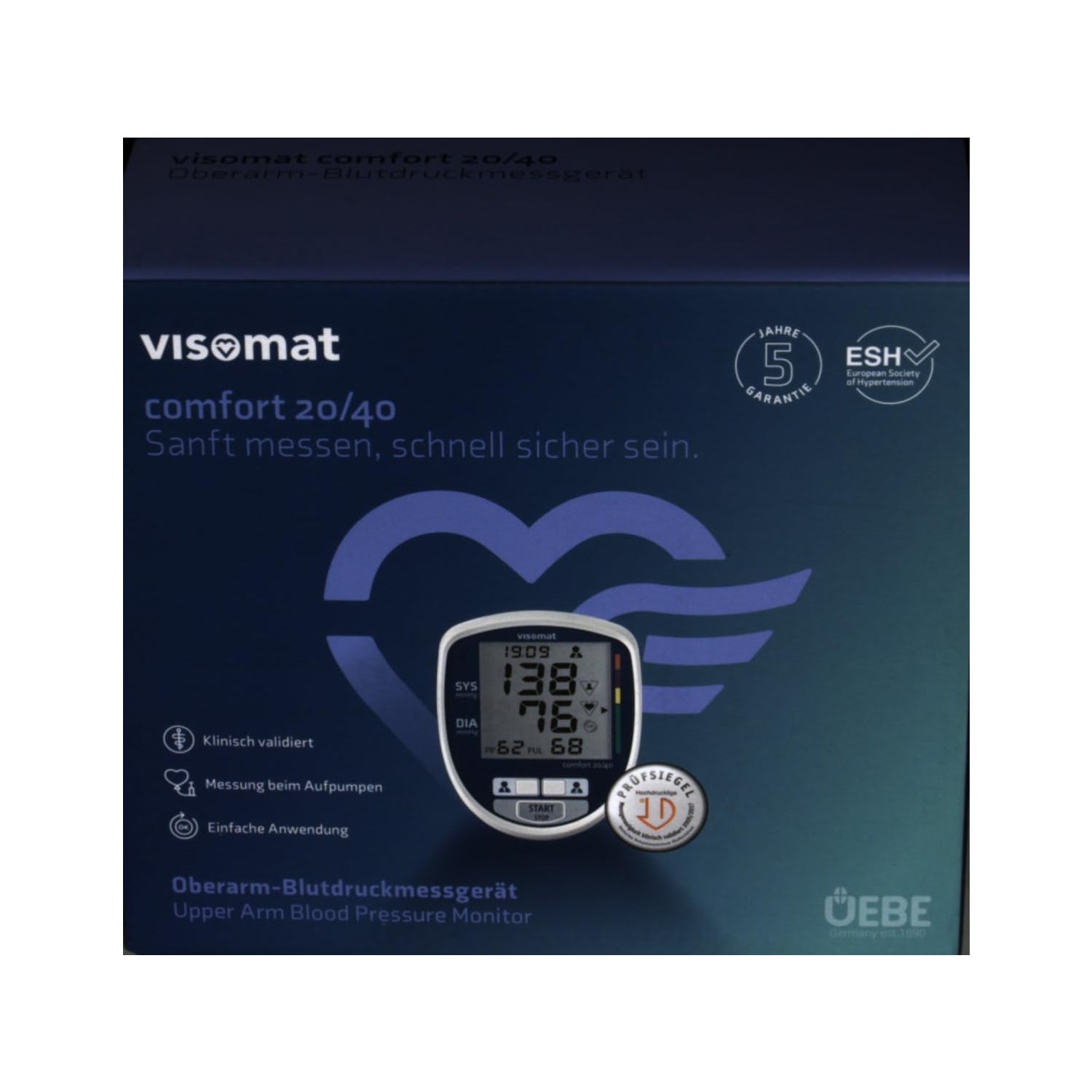 Visomat® Comfort Digital Upper Arm Blood Pressure Monitor 20/40 1pc automatically measures blood pressure and pulse in the upper arm. The evaluation starts when the arm cuff is inflated to the required level according to the fuzzy logic method. In the end, the results are displayed on the screen.
