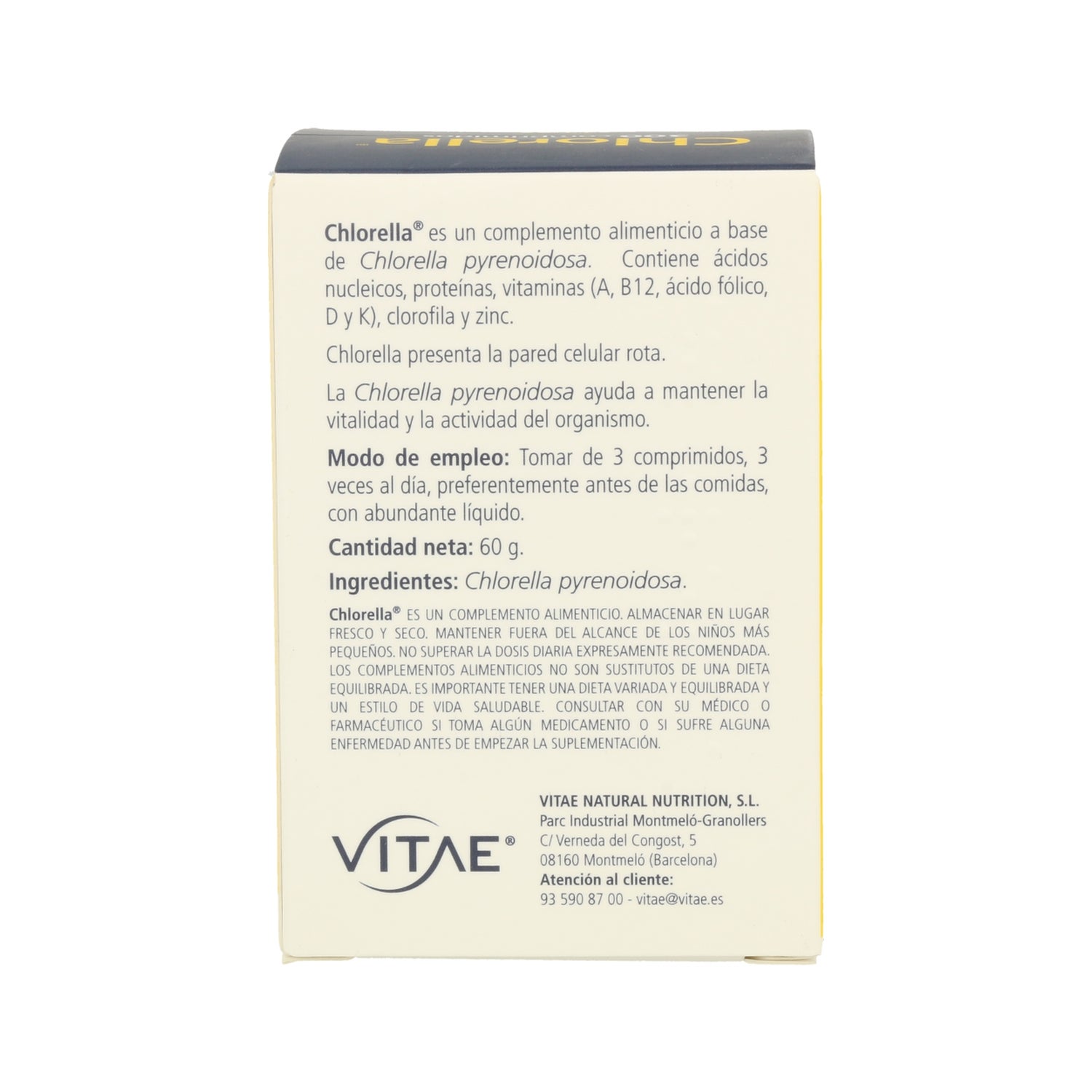 Vitae Chlorella 200mg 300comp is a supplement based on microalgae. It acts as a chelating agent, extracts intestinal toxins and also provides a high nutritional richness, as it contains chlorophyll, proteins, vitamins and minerals.