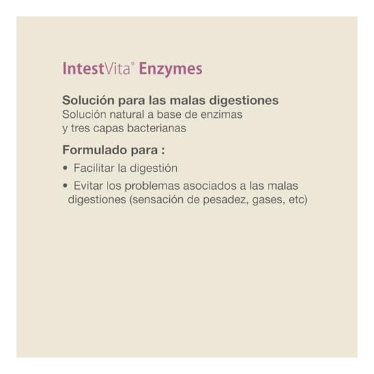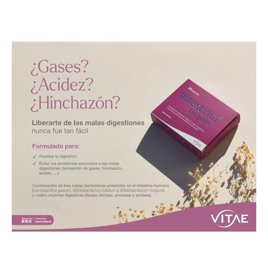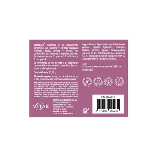 Vitae IntestVita Enzymes 60caps is a food supplement formulated with digestive enzymes and 3 bacterial strains.
