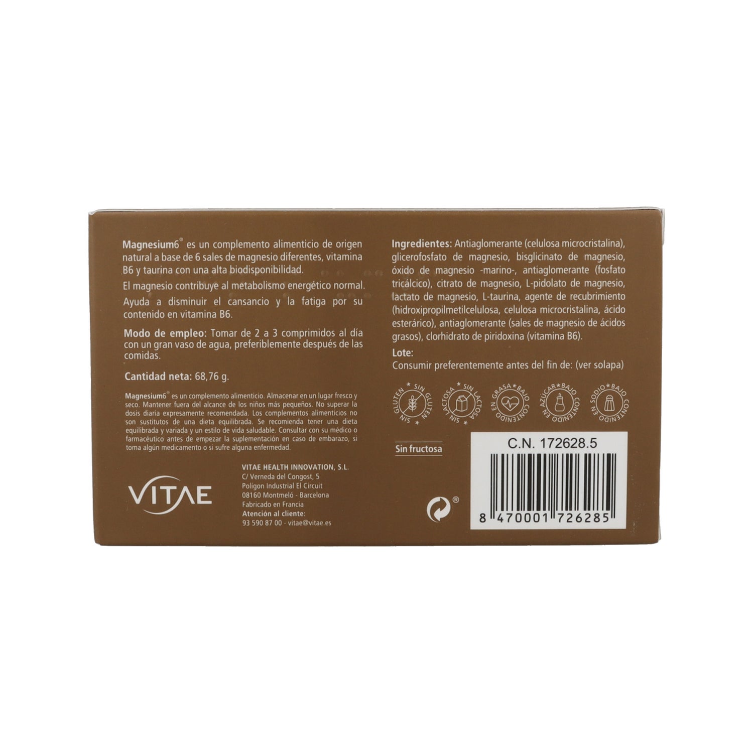 Vitae Magnesium6 60comp is a food supplement containing 6 magnesium salts combined with vitamin B6 and taurine.