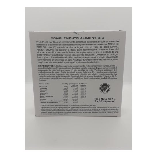 Vital Plus 90caps is a multivitamin dietary supplement that helps to protect the skin and hair from degenerative processes and skin aging.