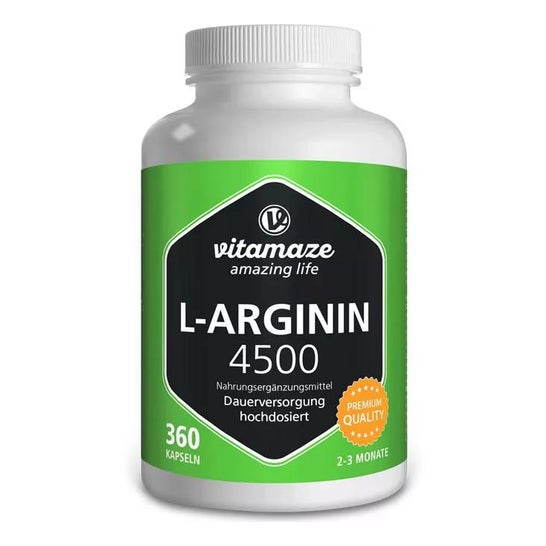 Vitamaze L-Arginine 750mg 360caps is a food supplement that contributes to improve circulation and normal maintenance of muscle mass .