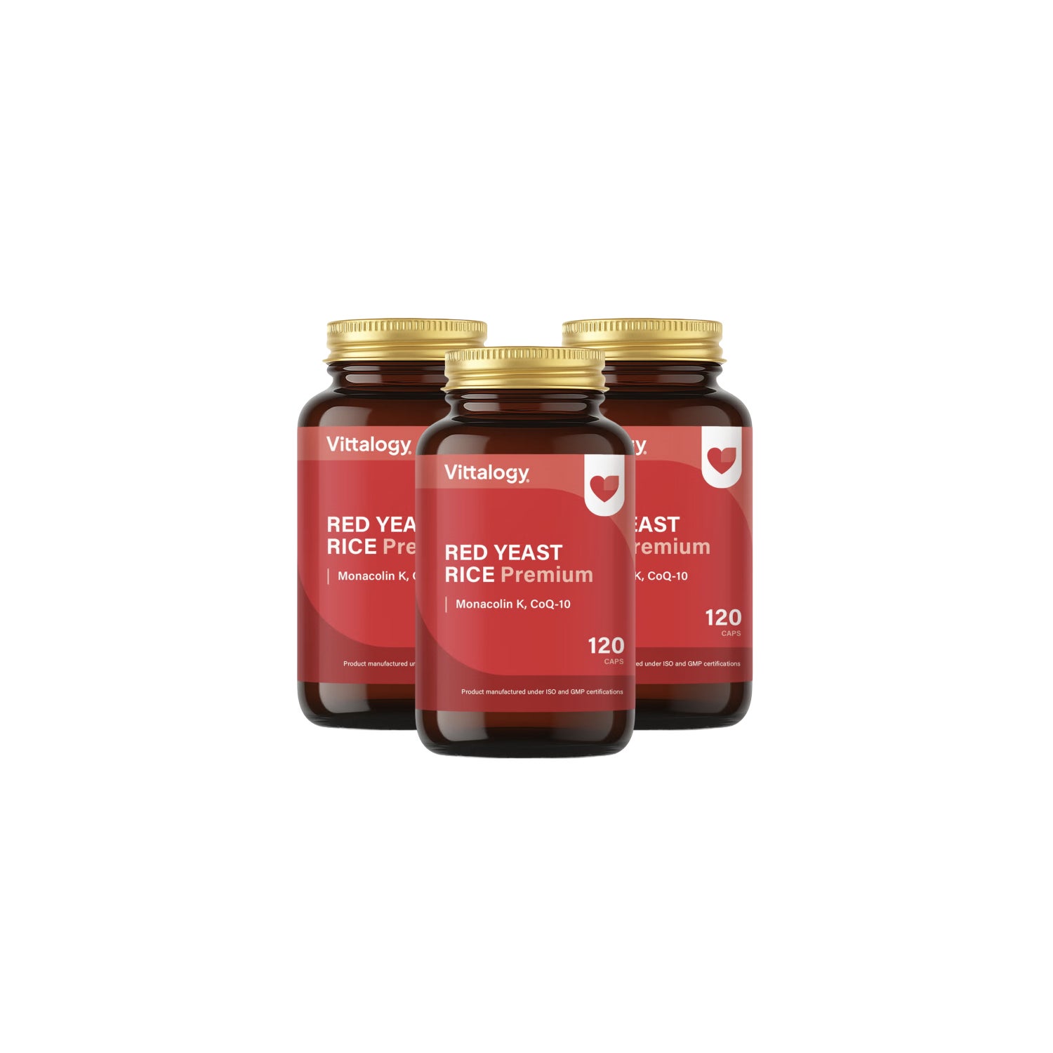 Vittalogy Red Yeast Rice Premium 3x120caps Dietary Supplement of Red Yeast Rice with Coenzyme Q10 to Reduce Cholesterol.