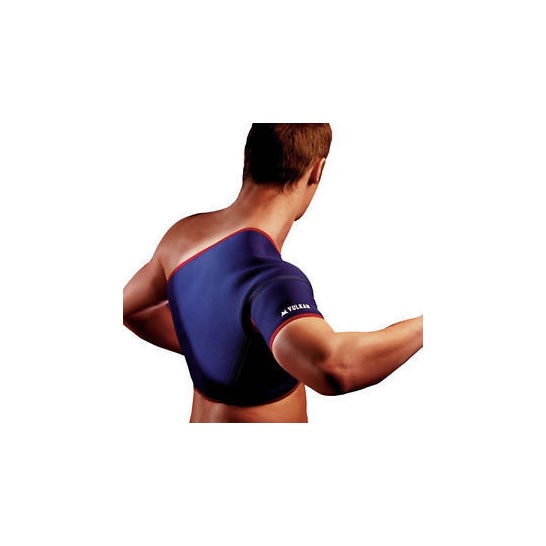 Vulkan right shoulder support classic blue 3mm Size S is designed to relieve shoulder pain such as bursitis, rheumatism, myositis, subluxations and tendonitis. Made from high quality, stretchy material with underarm opening for ease of movement and to provide extra support and compression on the shoulder (adjustable compression via front and arm closures).