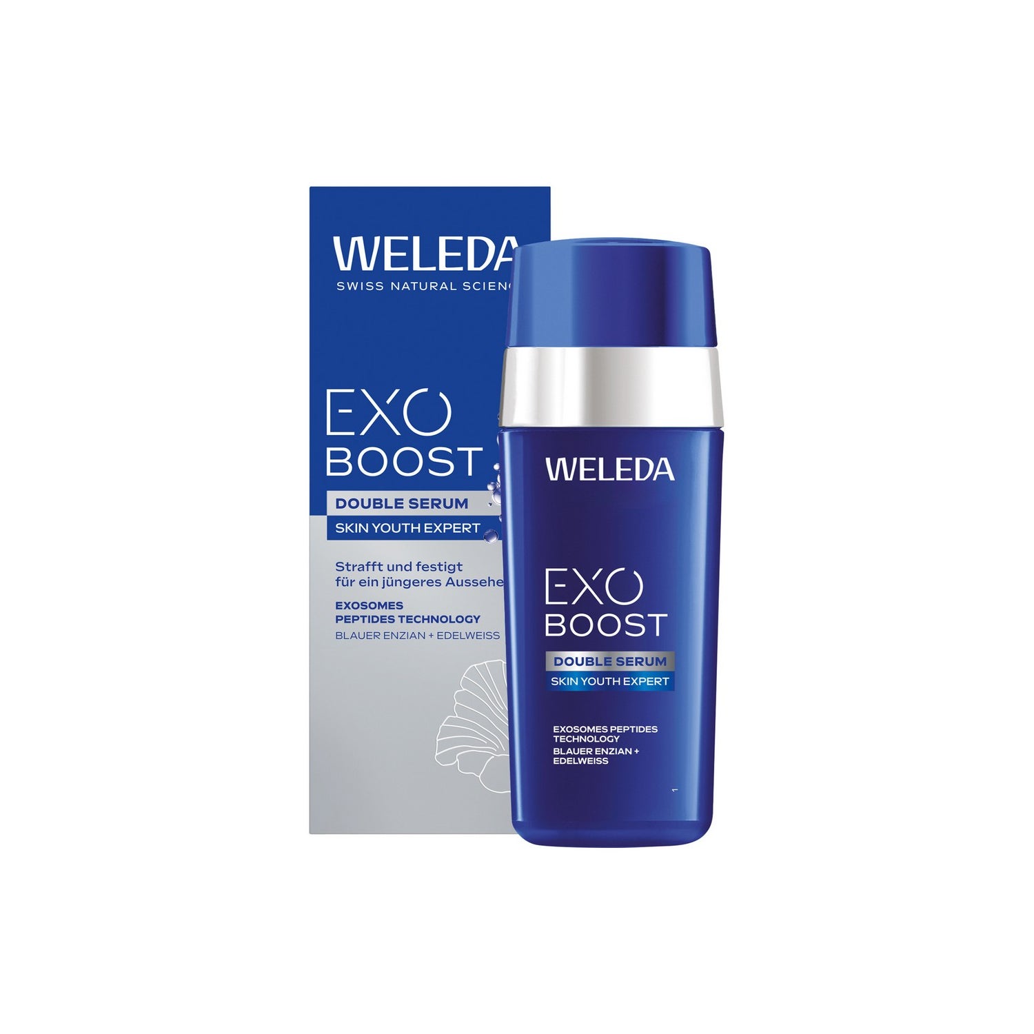 Weleda Exo Boost Double Serum 30 ml is a 2-in-1 bi-phase serum with exosome and peptide technology, designed for mature skin. It helps to firm and redensify, and contributes to improving signs of aging such as sagging and loss of firmness.