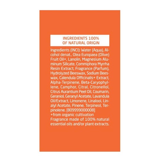 Water (Aqua), Alcohol, Arachis Hypogaea (Peanut) Oil, Fragrance (Parfum), Lanolin, Lanolin Alcohols, Glyceryl Stearate SE, Hectorite, Commiphora Myrrha (Myrrh) Extract, Calendula Officinalis Extract, Sodium Beeswax, Limonene, Linalool, Geraniol, Citral, Coumarin.