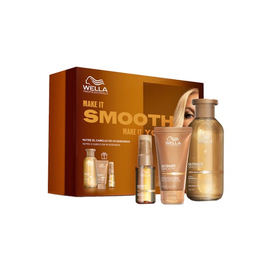 Wella Ultimate Smooth Pack Shampoo + Mask + Serum is a comprehensive solution designed to provide softness and control to rebellious or frizz-prone hair. This pack includes three products that work in synergy to transform your hair from the first use.