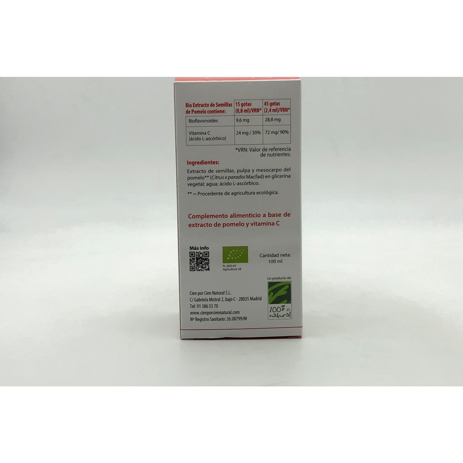 100% Natural Bio Extracto de Semillas de Pomelo Ecológico es un complemento alimenticio que se consigue de la extracción de los principios activos beneficiosos que contienen las semillas del pomelo, principalmente bioflavonoides y vitamina C.