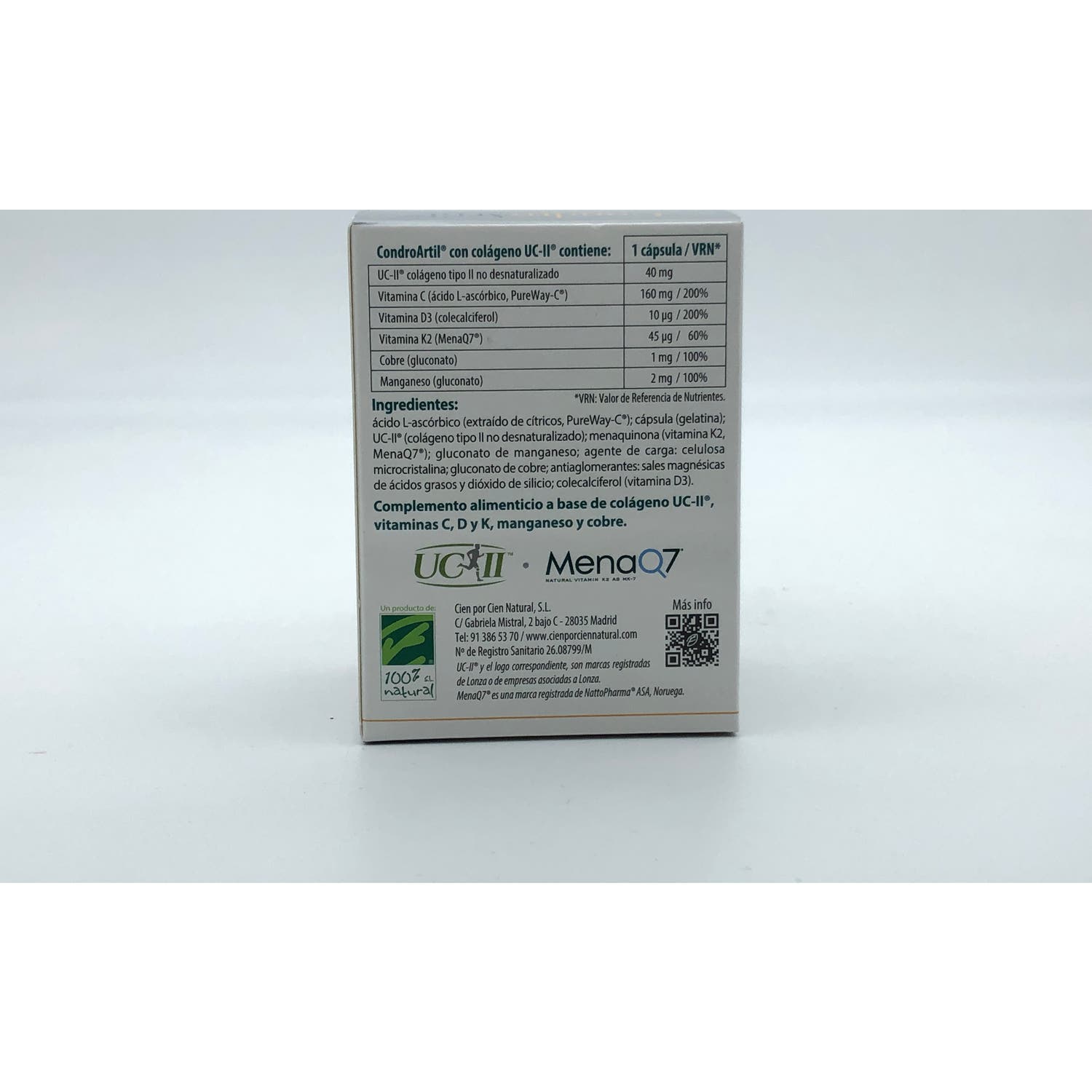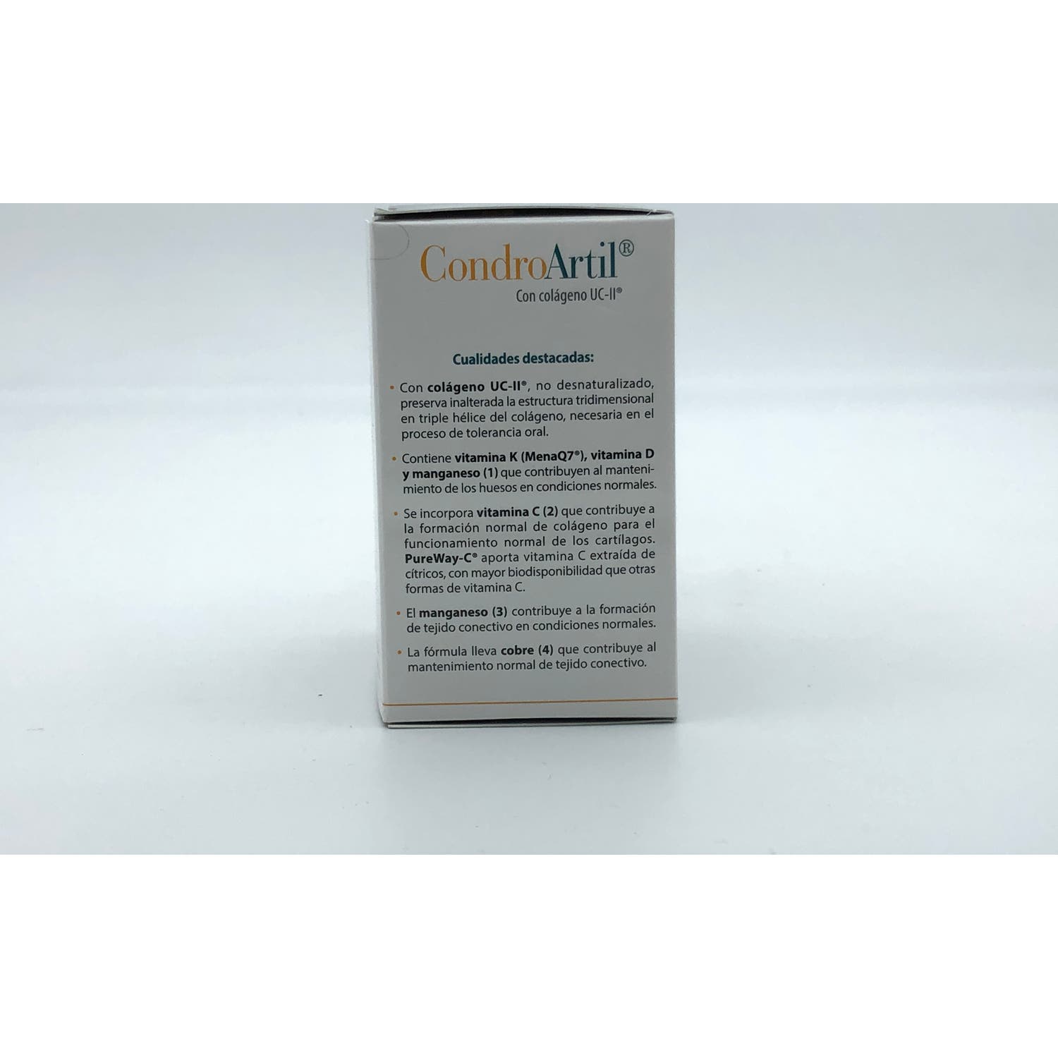 Complemento alimenticio en forma de cápsulas, elaborado a base de ingredientes de origen natural como el colágeno UC-II®, que contribuye a mejorar la salud de huesos, articulaciones y cartílagos, además de promover la formación y el mantenimiento del tejido conectivo.