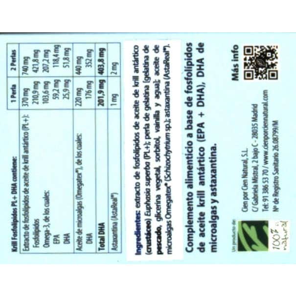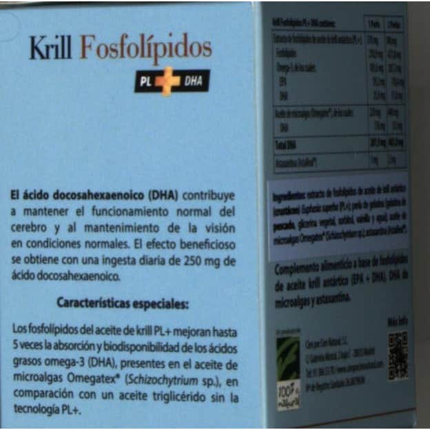 100% Natural Krill Fosfolípidos PL + DHA 90 Perlas es un producto que presenta una fórmula altamente concentrada de DHA, un ácido graso omega-3 de cadena larga. Este componente se obtiene a través de una tecnología innovadora denominada PL+, que utiliza fosfolípidos del aceite de krill.