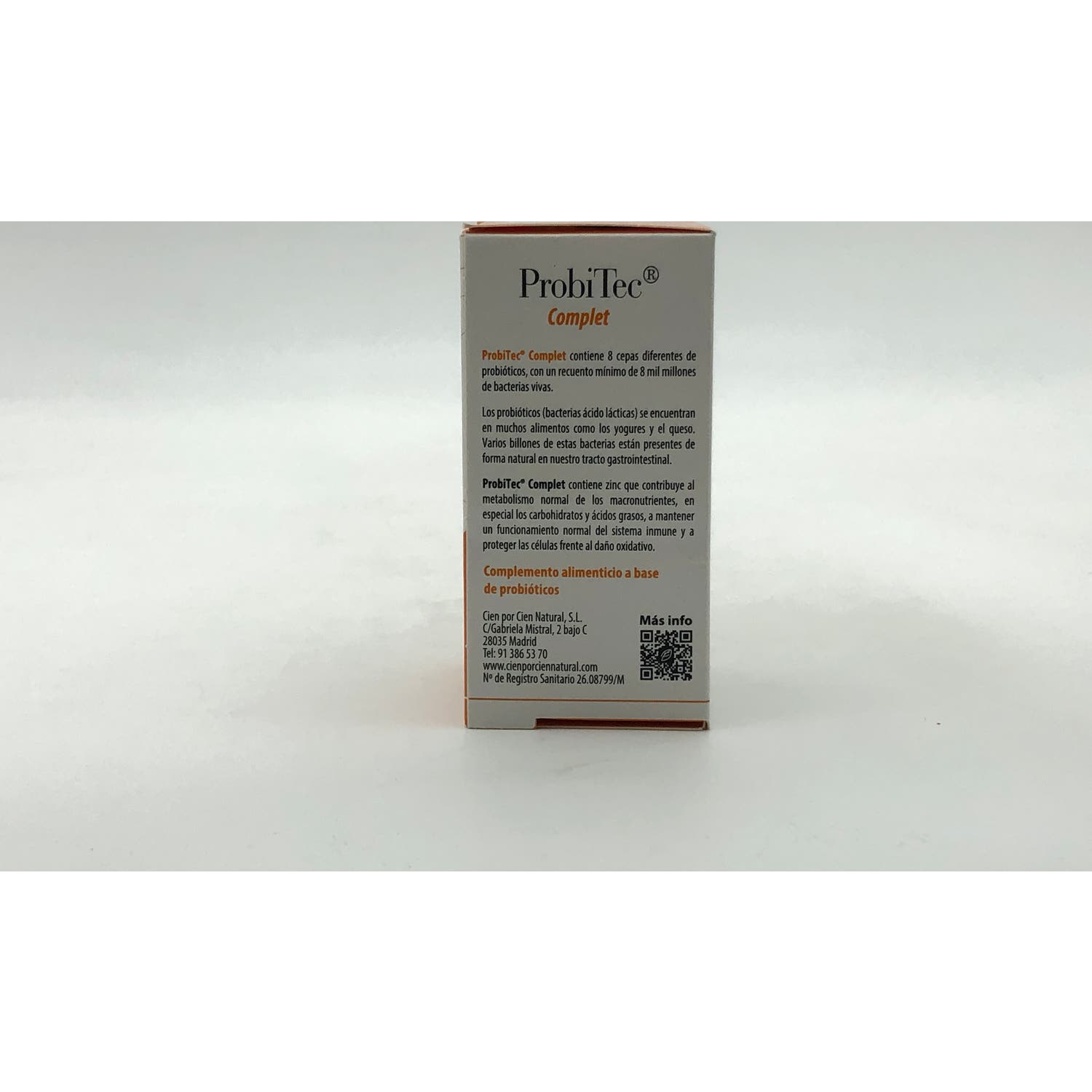 100% Natural Probitec Complet 30 cápsulas es un complemento alimenticio a base de una combinación de ocho bacterias patentadas (FloraActive®) combinadas con fructooligosacáridos y zinc. Está diseñado para adultos y niños mayores de 12 años.