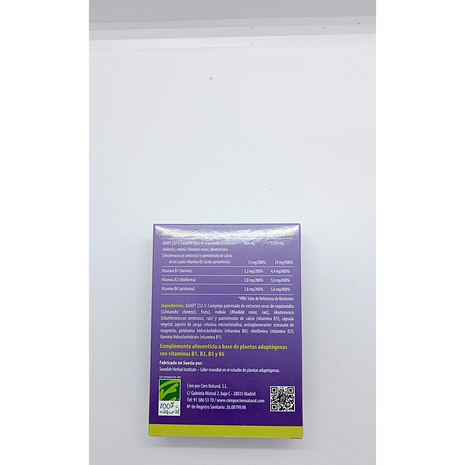 100% Natural Resiliens Vitalidad complemento especialmente diseñado para disminuir la fatiga y así, mehorar nuestro bienestar físico y mental. Su fórmula patentada de ADAPT-232S está compuesta por plantas adaptógenas: Equisandra, Eleuterococo y Rodiola, junto con vitamina B1, B2, B5 y B6. Este complemento colabora a disminuir los efectos del estrés mejorando nuestro ánimo y potenciando la energía de nuestro organismo.
