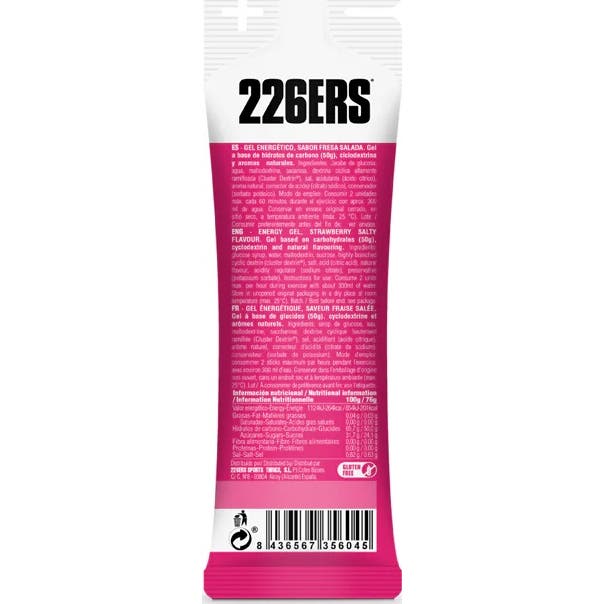 226Ers High Energy Gel Fresa 76g es un gel energético diseñado para proporcionar un alto contenido de carbohidratos. Su formulación incluye ciclodextrina y aromas naturales, lo que lo convierte en una opción efectiva para reponer energía durante actividades físicas intensas.