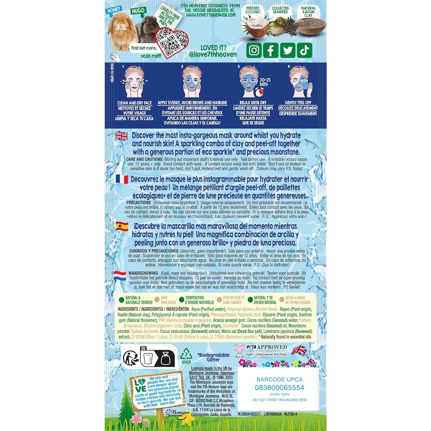 7Th Heaven Peel-Off Aquamarine Hidratante de 8 ml es una mascarilla exfoliante diseñada para revitalizar y purificar la piel. Su formulación incluye ingredientes como: