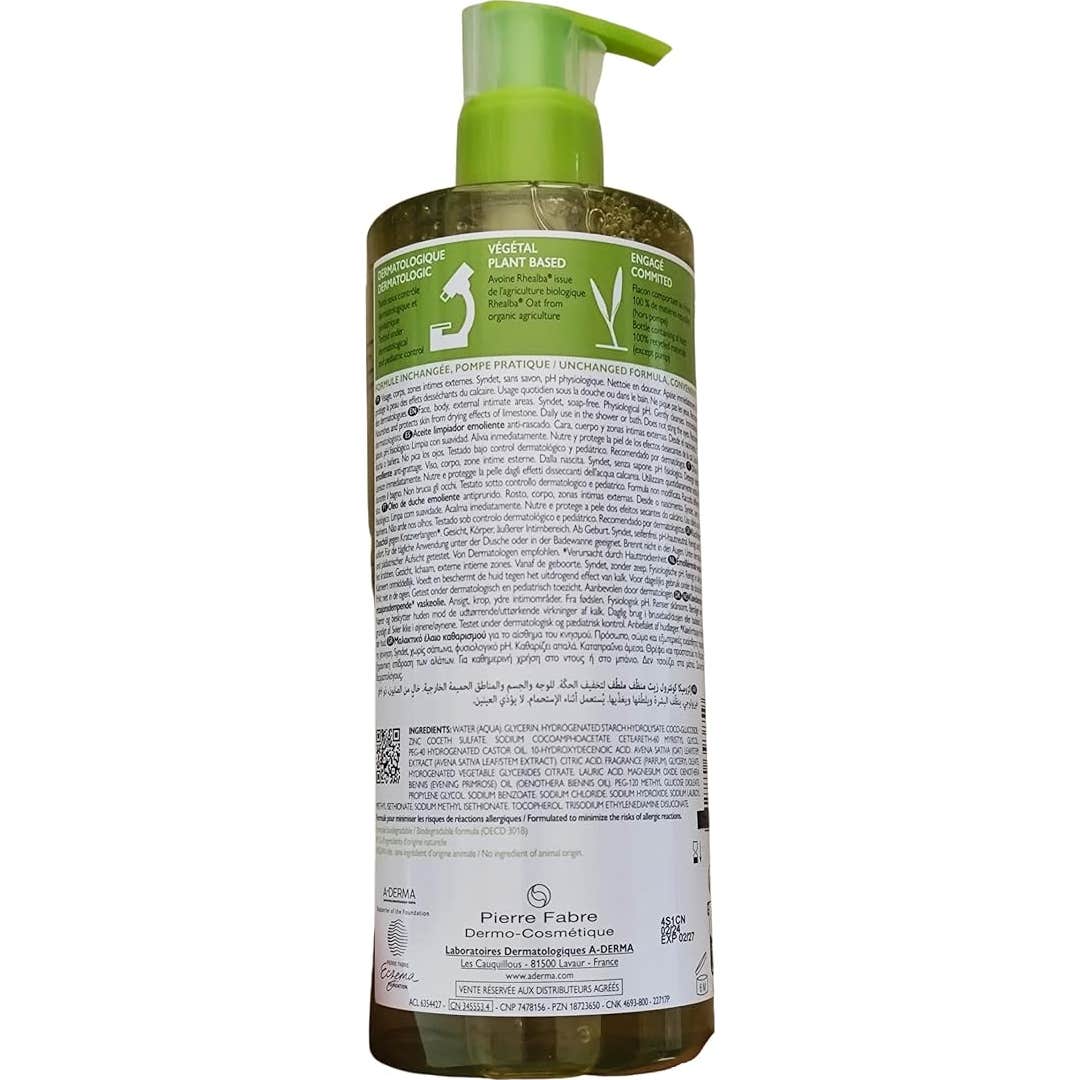 A-Derma Exomega Control Aceite Limpiador Emoliente 2x500ml es un aceite limpiador emoliente formulado sin jabón, pH fisiológico delicadamente perfumado y testado bajo control dermatológico y pediátrico.