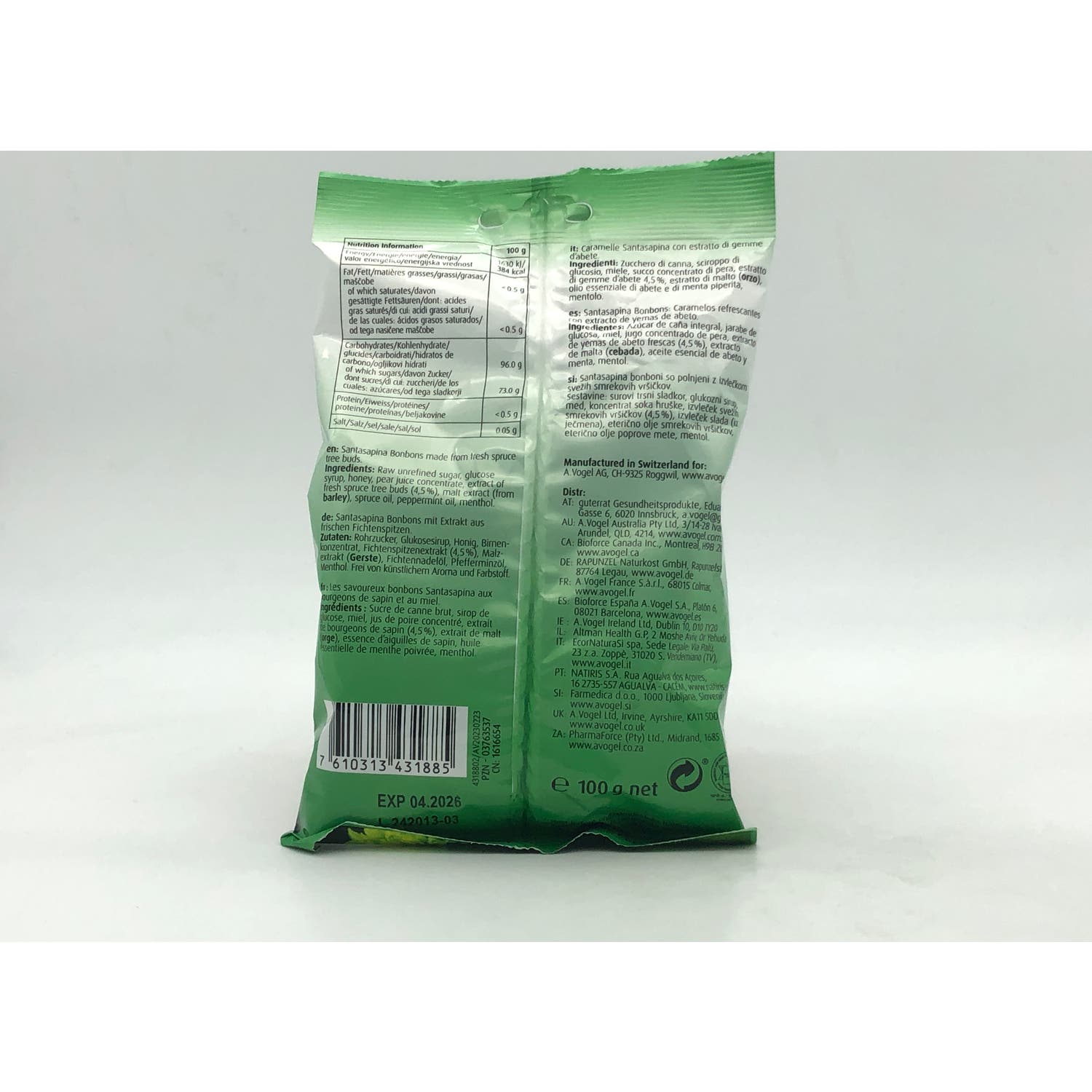 A. Vogel Santasapina Bonbons 100g son unos caramelos, enriquecidos con jugo y extracto de yemas de abeto frescas y de cultivo silvestre, indicados para reducir la tos irritativa. Posee un elevado poder refrescante, para abrir las vías respiratorias y permitirte respirar correctamente. Ayudan a reducir la carraspera, ronquera y tos de forma inmediata.