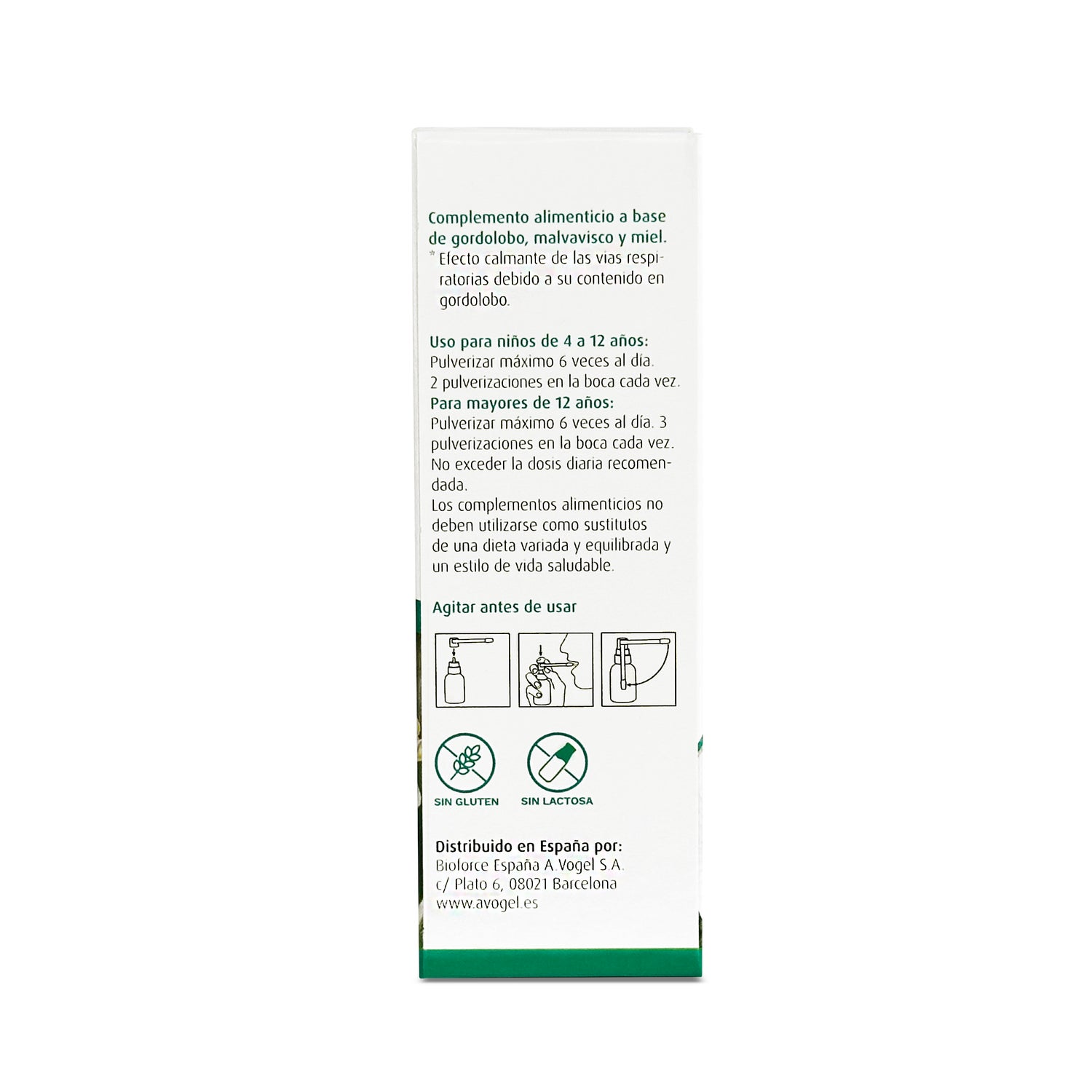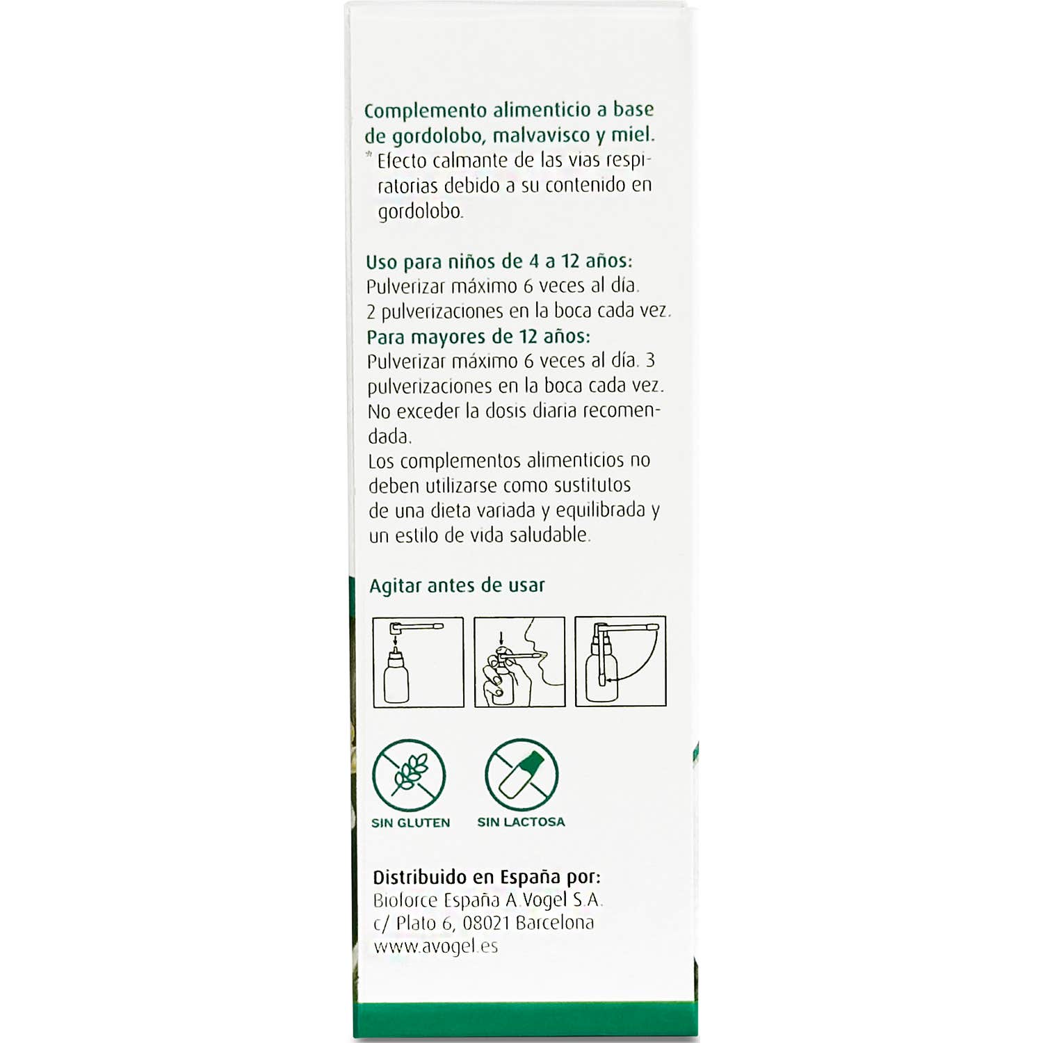 Uso para niños de 4 a 12 años: Pulverizar máximo 6 veces al día. 2 pulverizaciones en la boca cada vez.