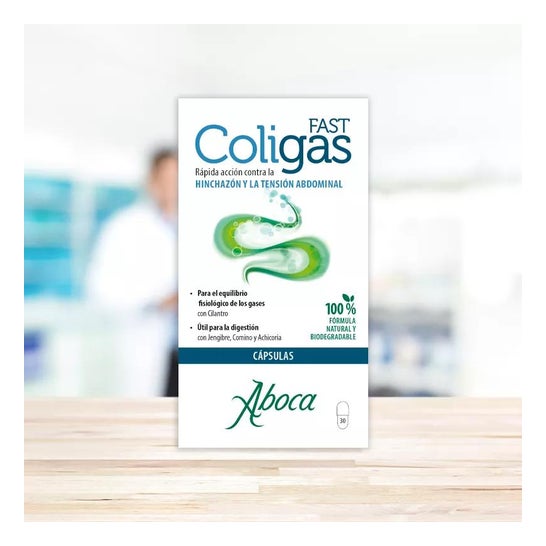 Aboca Coligas Fast 30caps es un complemento alimenticio para reducir la hinchazón y presión abdominales provocados por acumulación de gases tras las comidas.