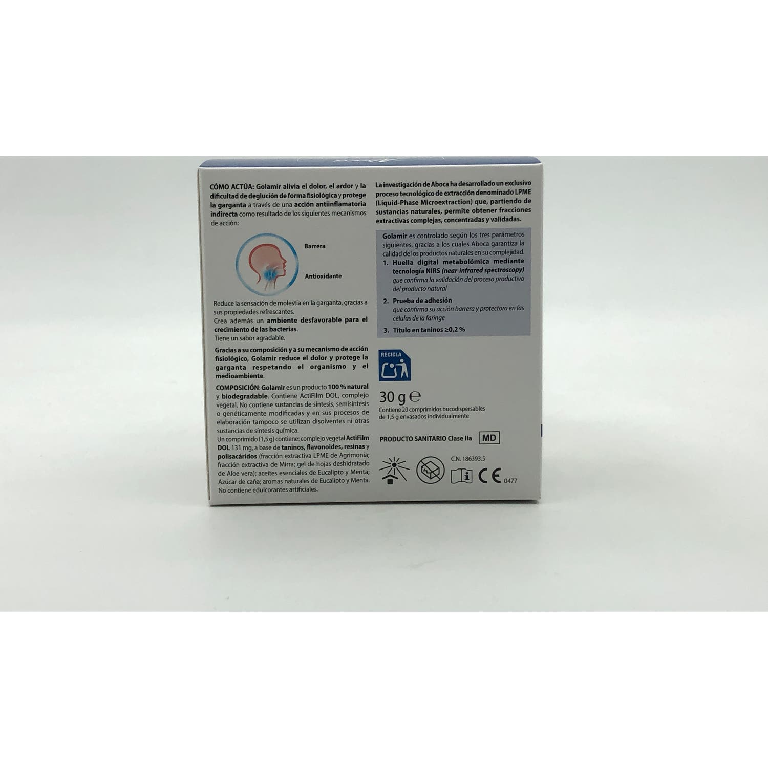 Aboca Golamir 2ACT 20comp es un complemento alimenticio 100% natural que ayuda a aliviar el dolor de garganta causado por agentes externos (virus, alergia, bacterias, etc.), y a protegerla.