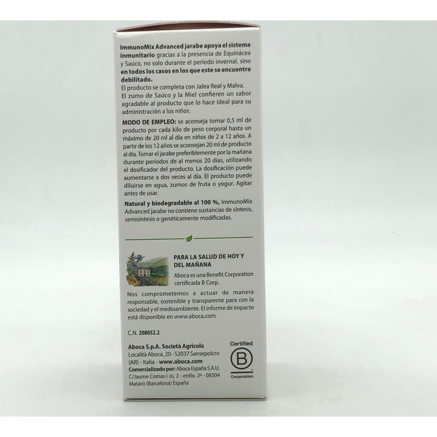 Aboca ImmunoMix Advanced Jarabe 210g es un complemento alimenticio en jarabe que ayuda a apoyar el sistema inmunitario. Es un producto 100% natural elaborado a base de equinácea, malva, jalea real y saúco.