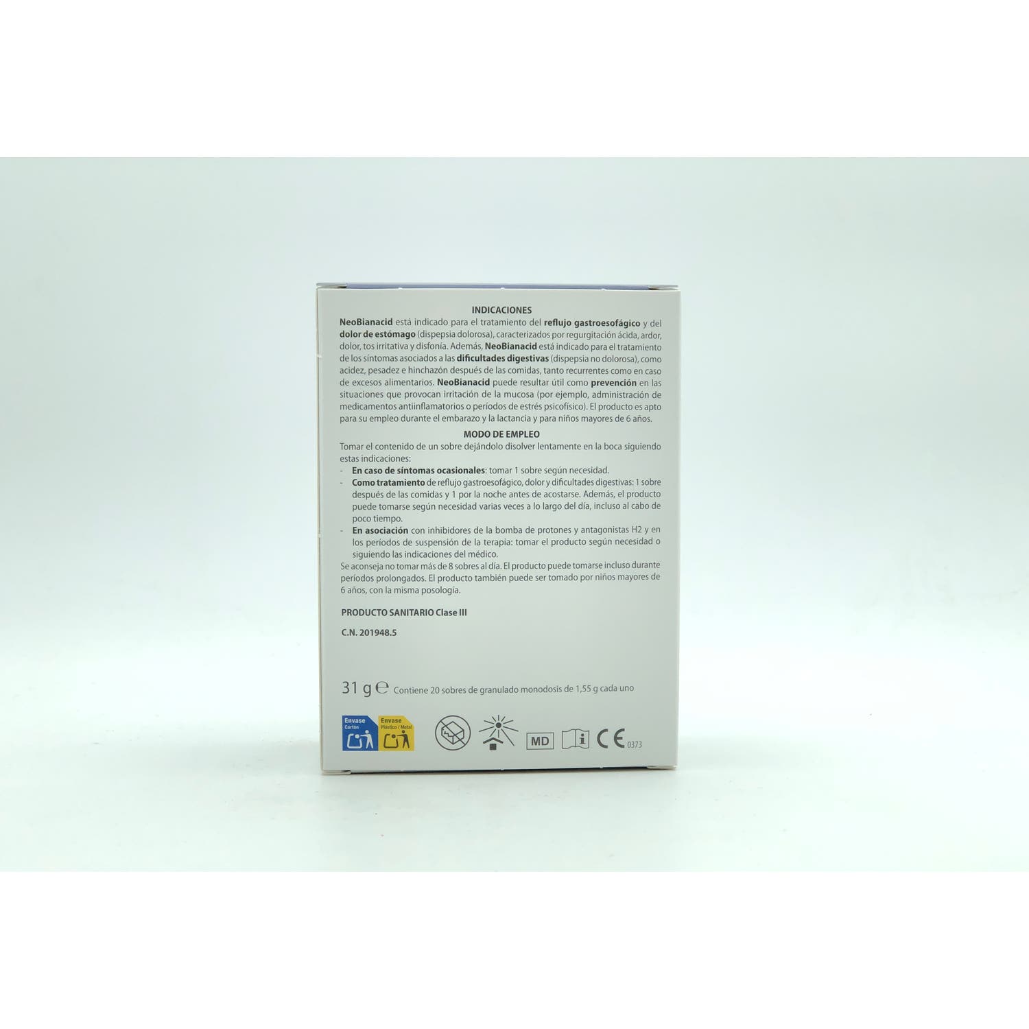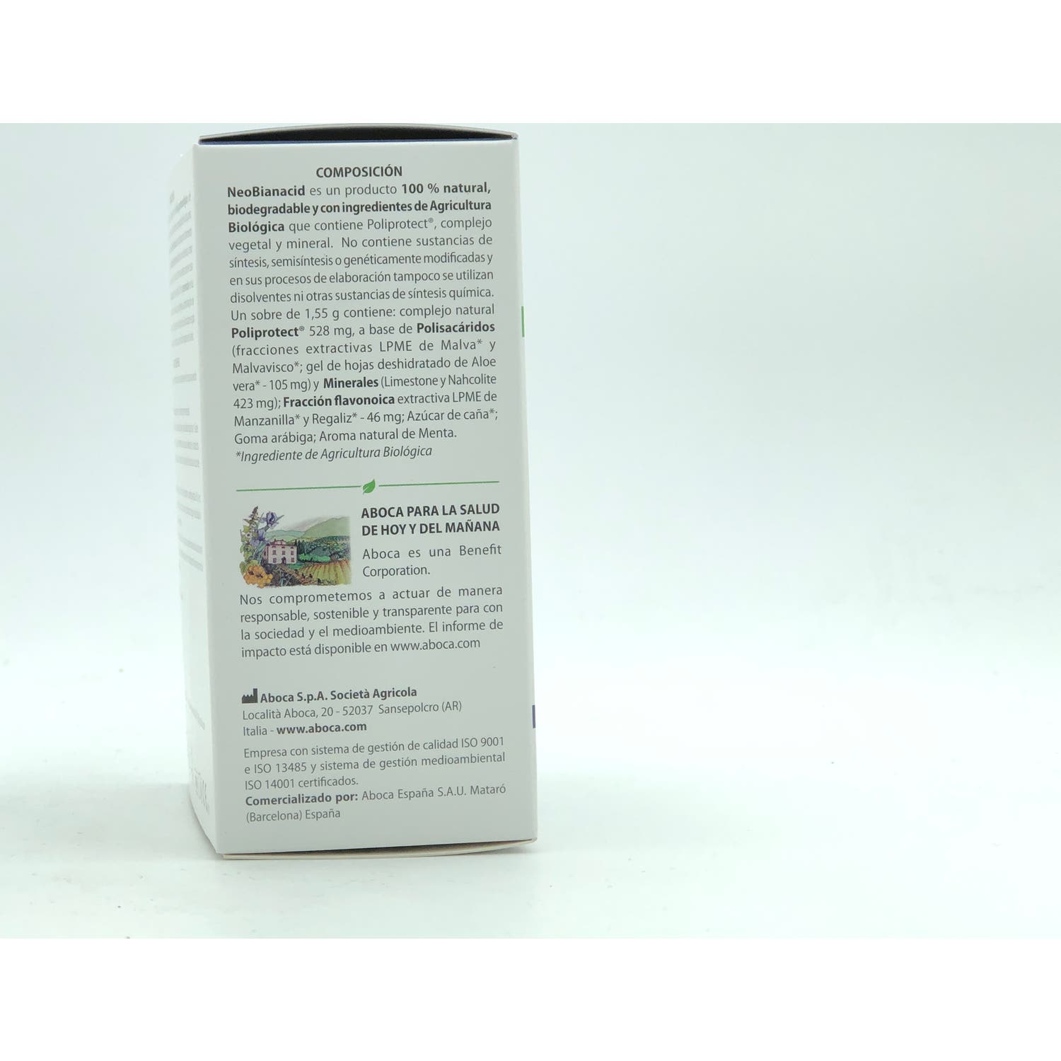 Aboca Neobianacid 20 sobres es un complemento alimenticio que ayuda a proteger y calmar la mucosa gastroesofágica útil para reducir molestias como ardor, dolor o sensación de acidez.