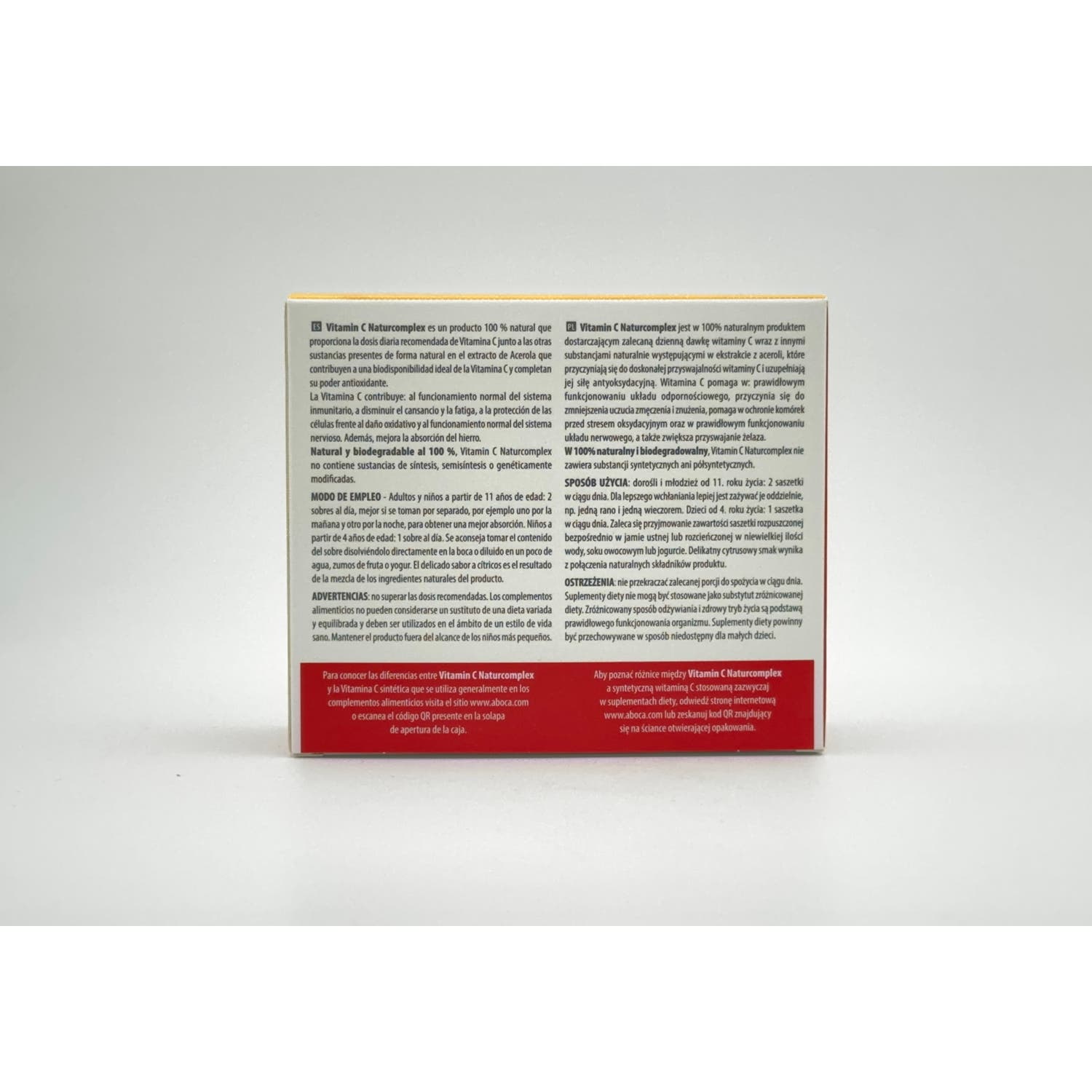 Aboca Vitamin C Naturcomplex 20uds es un complemento alimenticio en sobres solubles a base de vitamina C concentrada obtenida de la acerola. Favorece el funcionamiento normal del sistema inmune y contribuye a mantener niveles normales de energía durante el día. Sus componentes ayudan a prevenir la aparición de los signos de fatiga. Indicado para adultos.