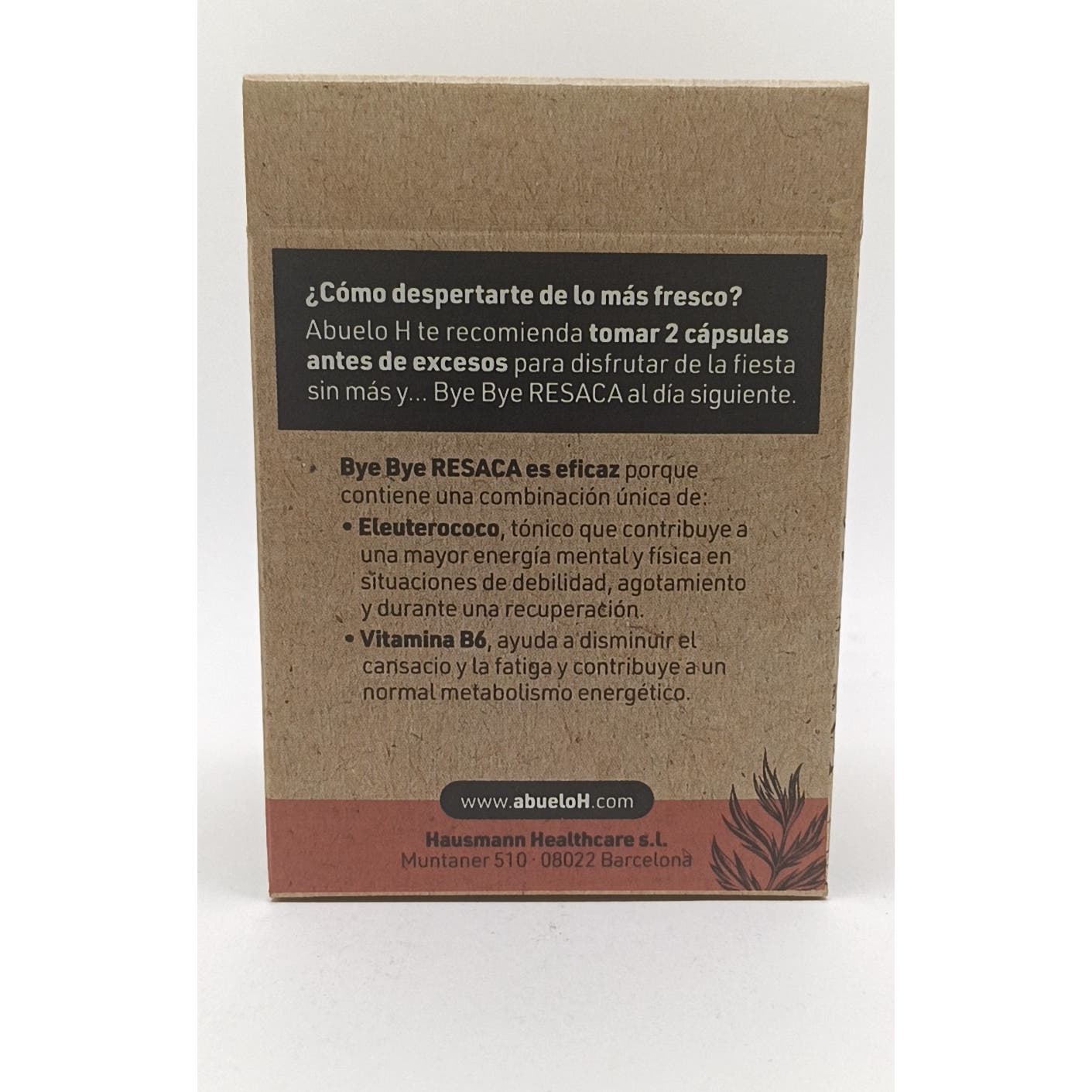 AbueloH Bye Bye Resaca 20caps es un complemento alimenticio natural que contribuye a disminuir el cansancio y la fatiga, gracias al aporte de vitamina B6. Da soporte al normal funcionamiento del sistema nervioso.