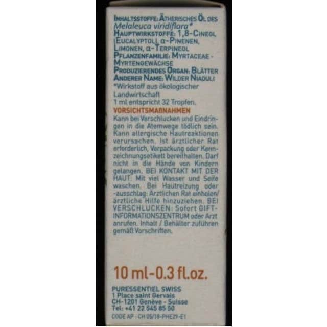 El Aceite Esencial Ecológico Puressentiel Niaouli es antiséptico, antiviral y antimicótico. Estimula el sistema inmunitario y facilita la tos y la expectoración, trata la sinusitis, la rinitis y la bronquitis por inhalación. Cicatrizante, protege la piel de las infecciones (acné, eczema, herpes, etc.) y de las radiaciones, y la restaura. En caso de radioterapia, puede aplicarse generosamente en las zonas irradiadas como medida preventiva. También puede aplicarse en masaje para aliviar la pesadez de piernas, los dolores reumáticos, las agujetas y los escalofríos.